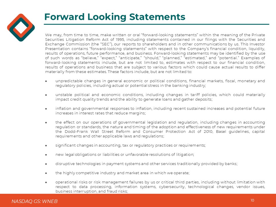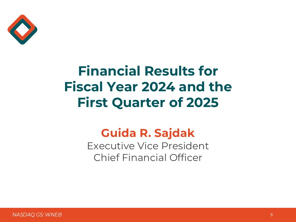 Financial Results for Fiscal Year 2024 and the First Quarter of 2025 Guida R. Sajdak Executive Vice President Chief Financial Officer NASDAQ GS: WNEB NASDAQ GS: WNEB 9