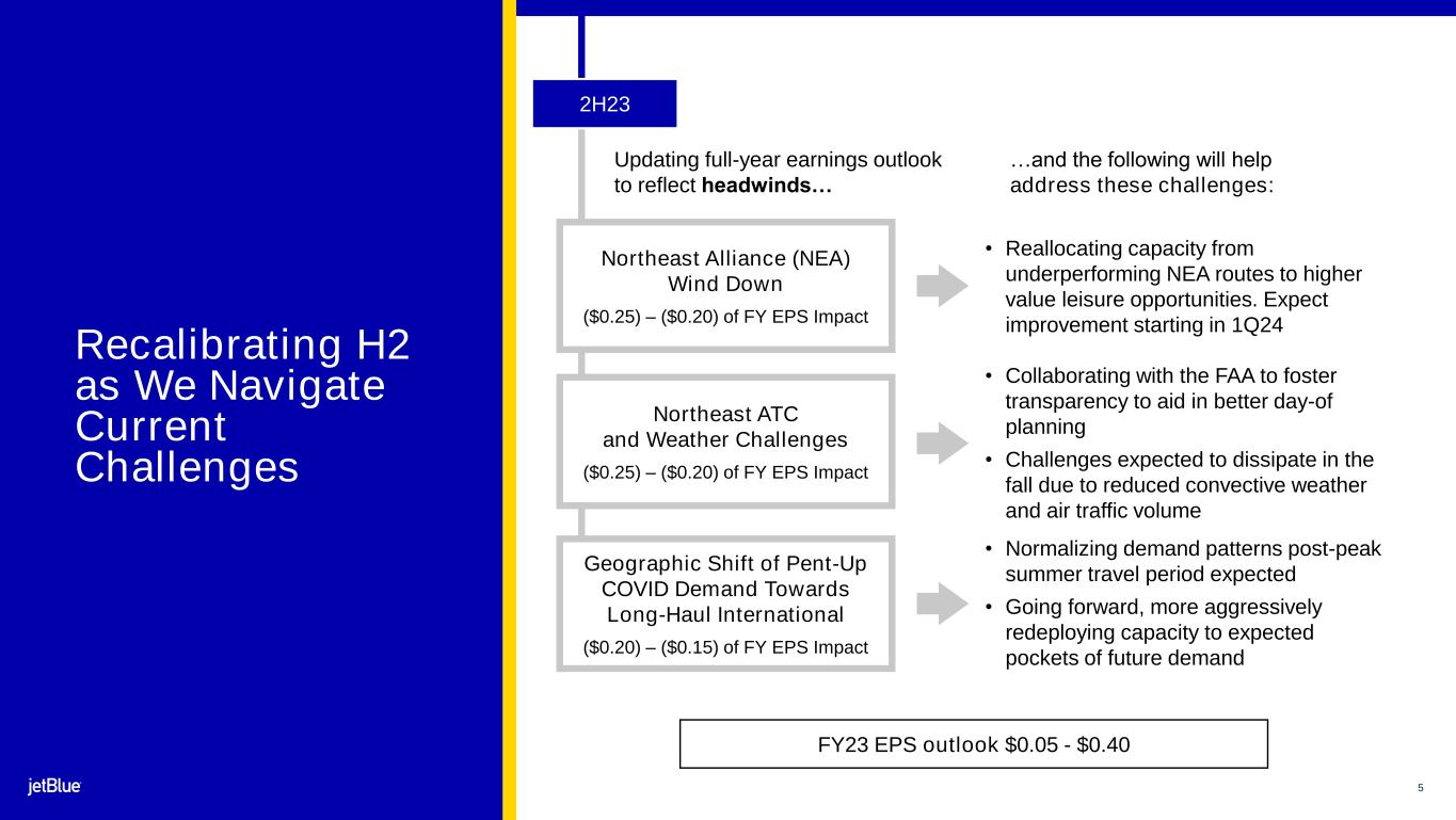 4 Delivered on H1 Commitments Despite Headwinds Executed on 2Q23 adjusted EPS guidance, demonstrating solid financial execution throughout H1 Delivered all-time record quarterly revenue, with record revenue in every month of the quarter Drove strong operational performance which benefited from significant investments and robust summer preparation 2Q23