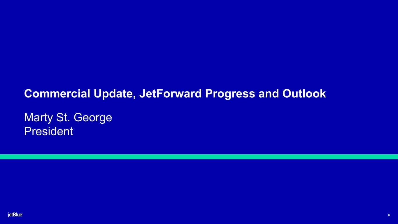 The JetBlue Way Forward | Our Strategic Evolution | Returning to Historical Earnings Power Commercial Update, JetForward Progress and Outlook Marty St. George President 6