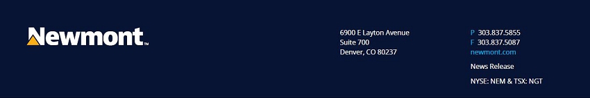 The webcast materials will be available before the conference call on the “Investor Relations” section of the Company’s website, www.newmont.com. Additionally, the conference call will be archived for a limited time on the Company’s website.