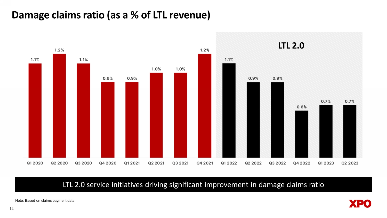 13 11% to 13% adjusted EBITDA CAGR in North American LTL 2021 - 2027 Combination of volume gains + pricing over inflation 6% to 7% 3% to 4% 2% Operating costs optimized through technology Linehaul insourced from third parties Expected components and contributions 11% to 13%