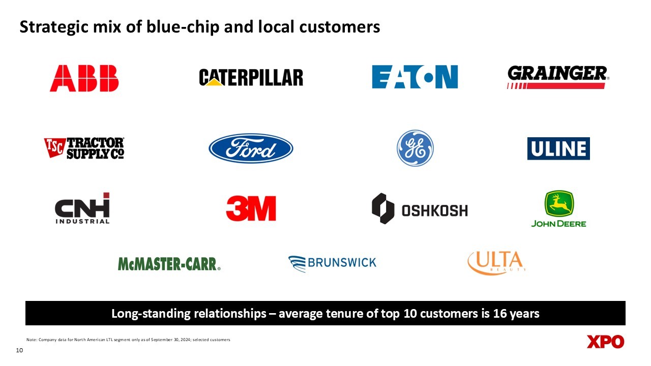 Strategic mix of blue - chip and local customers 10 Note: Company data for North American LTL segment only as of September 30, 2024; selected customers Long - standing relationships – average tenure of top 10 customers is 16 years