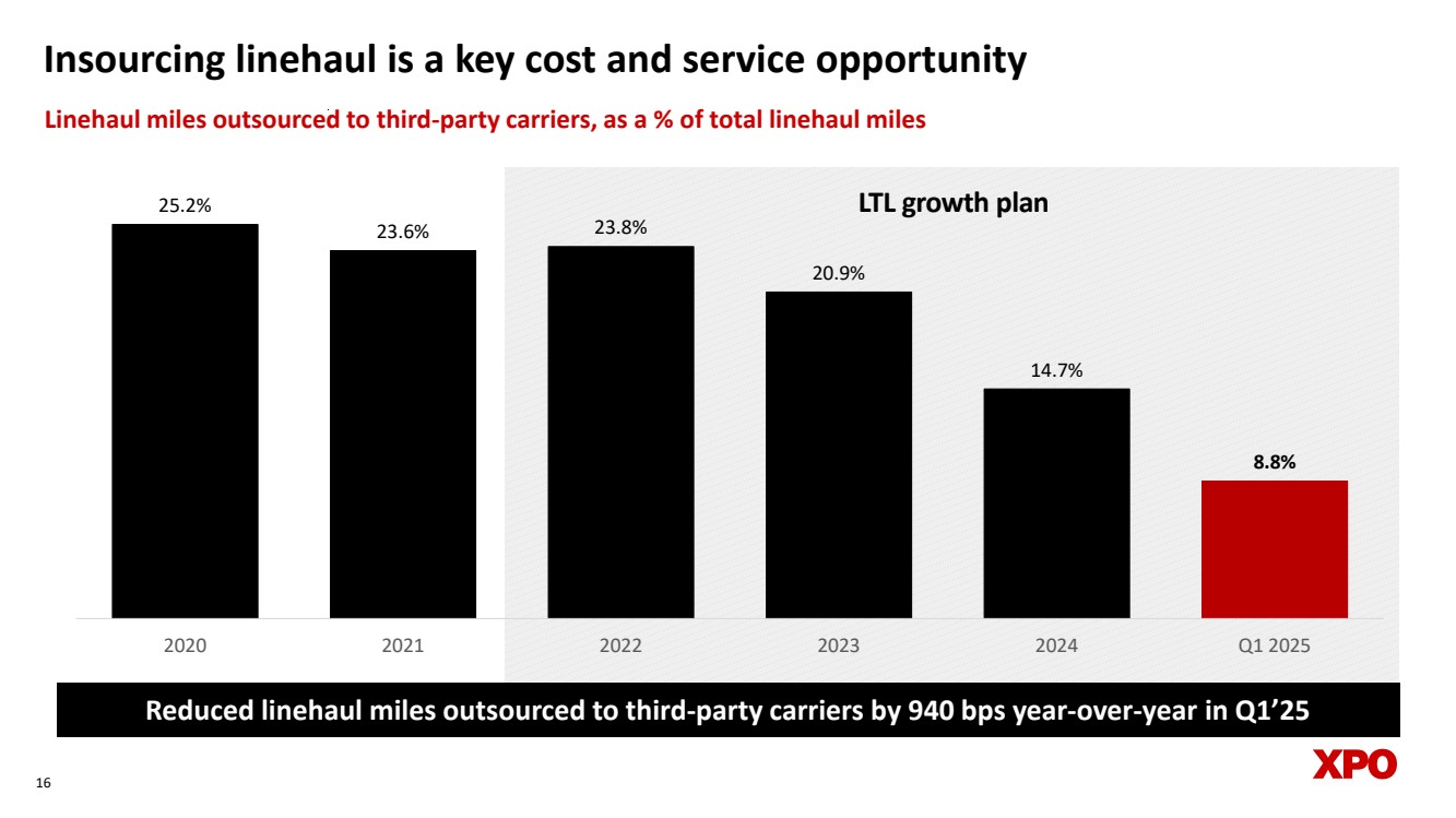 Earning price by delivering value through service excellence 15 Note: Gross revenue per hundredweight excludes the adjustment required for financial statement purposes in accordance with th e c ompany's revenue recognition policy Yield, excluding fuel, improved 6.9% year - over - year in Q1’25 Gross revenue per hundredweight (excluding fuel surcharges) $18.63 $19.80 $21.18 $22.21 $23.94 $24.73 2020 2021 2022 2023 2024 Q1 2025 LTL growth plan