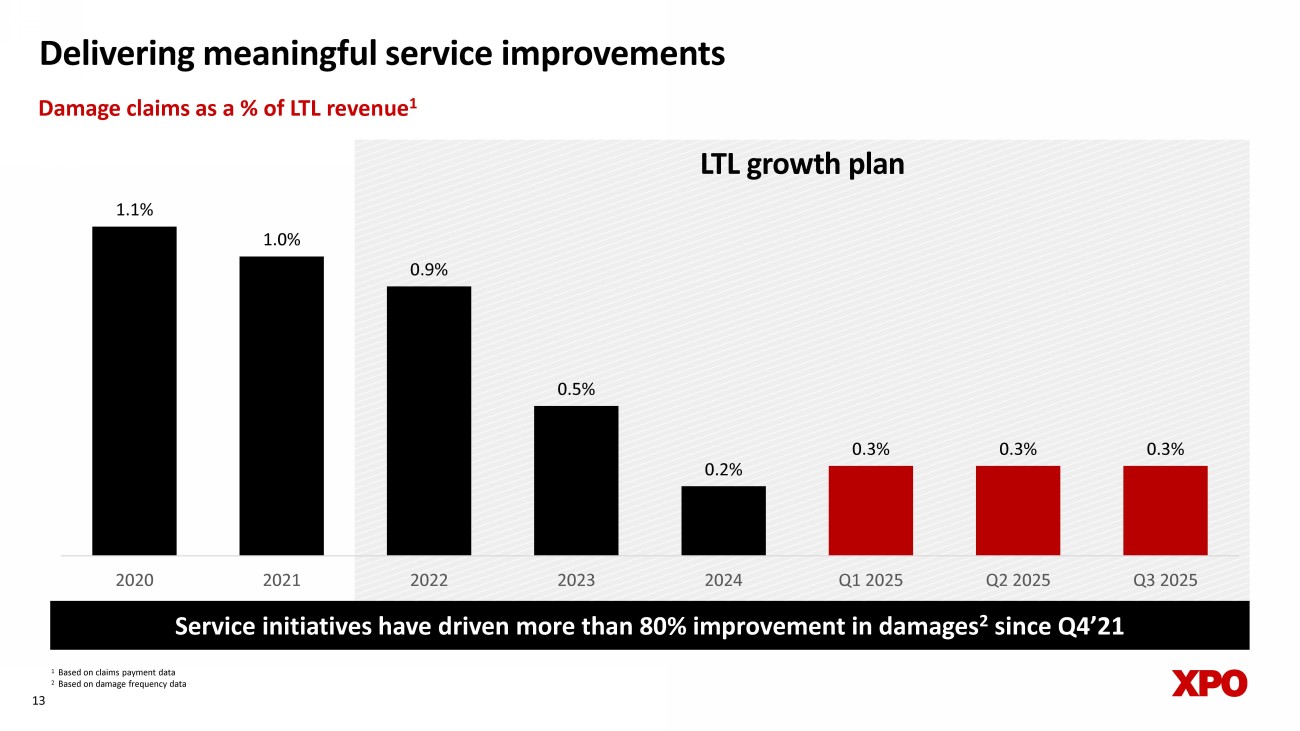 2 Forward - looking statements This document includes forward - looking statements within the meaning of Section 27 A of the Securities Act of 1933 , as amended, and Section 21 E of the Securities Exchange Act of 1934 , as amended, including statements relating to our full year 2025 expectations of gross capex, interest expense, pension income, adjusted effective tax rate, and diluted share count, and future financial targets of North American LTL revenue CAGR, adjusted EBITDA CAGR, adjusted operating ratio improvement, and capex as a percentage of revenue . All statements other than statements of historical fact are, or may be deemed to be, forward - looking statements . In some cases, forward - looking statements can be identified by the use of forward - looking terms such as “anticipate,” “estimate,” “believe,” “continue,” “could,” “intend,” “may,” “plan,” “potential,” “predict,” “should,” “will,” “expect,” “objective,” “projection,” “forecast,” “goal,” “guidance,” “outlook,” “effort,” “target,” “trajectory” or the negative of these terms or other comparable terms . These forward - looking statements are based on certain assumptions and analyses made by us in light of our experience and our perception of historical trends, current conditions and expected future developments, as well as other factors we believe are appropriate in the circumstances . These forward - looking statements are subject to known and unknown risks, uncertainties and assumptions that may cause actual results, levels of activity, performance or achievements to be materially different from any future results, levels of activity, performance or achievements expressed or implied by such forward - looking statements . Factors that might cause or contribute to a material difference include the risks discussed in our filings with the SEC, and the following : the effects of business, economic, political, legal, and regulatory impacts or conflicts upon our operations ; supply chain disruptions and shortages, strains on production or extraction of raw materials, cost inflation and labor and equipment shortages ; our ability to align our investments in capital assets, including equipment, service centers, and warehouses to our customers’ demands ; our ability to implement our cost and revenue initiatives and realize growth and expansion as a result of those initiatives ; the effectiveness of our action plan, and other management actions, to improve our North American LTL business ; our ability to continue insourcing linehaul in ways that enhance our network efficiency and productivity ; the anticipated impact of a freight market recovery on our business ; our ability to capture profitable share gains, facilitate yield growth, and improve margins during an upcycle ; our ability to benefit from a sale, spin - off or other divestiture of one or more business units or to successfully integrate and realize anticipated synergies, cost savings and profit opportunities from acquired companies ; goodwill impairment ; issues related to compliance with data protection laws, competition laws, and intellectual property laws ; fluctuations in currency exchange rates, fuel prices and fuel surcharges ; the expected benefits of the spin - offs of GXO Logistics, Inc . and RXO, Inc .; our ability to develop and implement proprietary technology and suitable information technology systems ; the impact of potential cyber - attacks and information technology or data security breaches or failures ; our ability to repurchase shares on favorable terms ; our indebtedness ; our ability to raise debt and equity capital ; fluctuations in interest rates ; seasonal fluctuations ; our ability to maintain positive relationships with our network of third - party transportation providers ; our ability to attract and retain management talent and key employees including qualified drivers ; labor matters ; litigation ; competition ; and our ability to deliver improve pricing growth driven by service quality . All forward - looking statements set forth in this document are qualified by these cautionary statements and there can be no assurance that the actual results or developments anticipated by us will be realized or, even if substantially realized, that they will have the expected consequences to or effects on us or our business or operations . Forward - looking statements set forth in this document speak only as of the date hereof, and we do not undertake any obligation to update forward - looking statements except to the extent required by law . Non - GAAP financial measures This presentation contains non - GAAP financial measures . For a description of these non - GAAP financial measures, including reconciliations to the most comparable measure under GAAP, see the Appendix to this presentation .