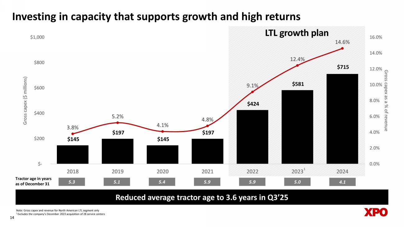 1.1% 1.0% 0.9% 0.5% 0.2% 0.3% 0.3% 0.3% 2020 2021 2022 2023 2024 Q1 2025 Q2 2025 Q3 2025 1 Based on claims payment data 2 Based on damage frequency data 13 Service initiatives have driven more than 80% improvement in damages 2 since Q4’21 Delivering meaningful service improvements Damage claims as a % of LTL revenue 1 LTL growth plan