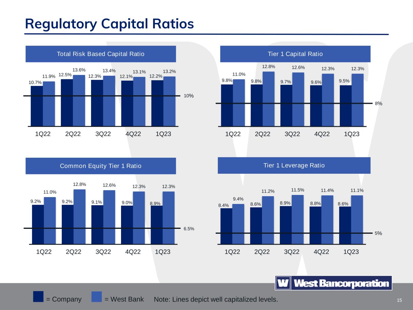 15 Regulatory Capital Ratios 10.7% 12.5% 12.3% 12.1% 12.2%11.9% 13.6% 13.4% 13.1% 13.2% 1Q22 2Q22 3Q22 4Q22 1Q23 Tier 1 Capital Ratio Tier 1 Leverage RatioCommon Equity Tier 1 Ratio = Company = West Bank 9.8% 9.8% 9.7% 9.6% 9.5% 11.0% 12.8% 12.6% 12.3% 12.3% 1Q22 2Q22 3Q22 4Q22 1Q23 Total Risk Based Capital Ratio 9.2% 9.2% 9.1% 9.0% 8.9% 11.0% 12.8% 12.6% 12.3% 12.3% 1Q22 2Q22 3Q22 4Q22 1Q23 8.4% 8.6% 8.9% 8.8% 8.6% 9.4% 11.2% 11.5% 11.4% 11.1% 1Q22 2Q22 3Q22 4Q22 1Q23 10% 6.5% 8% 5% Note: Lines depict well capitalized levels.
