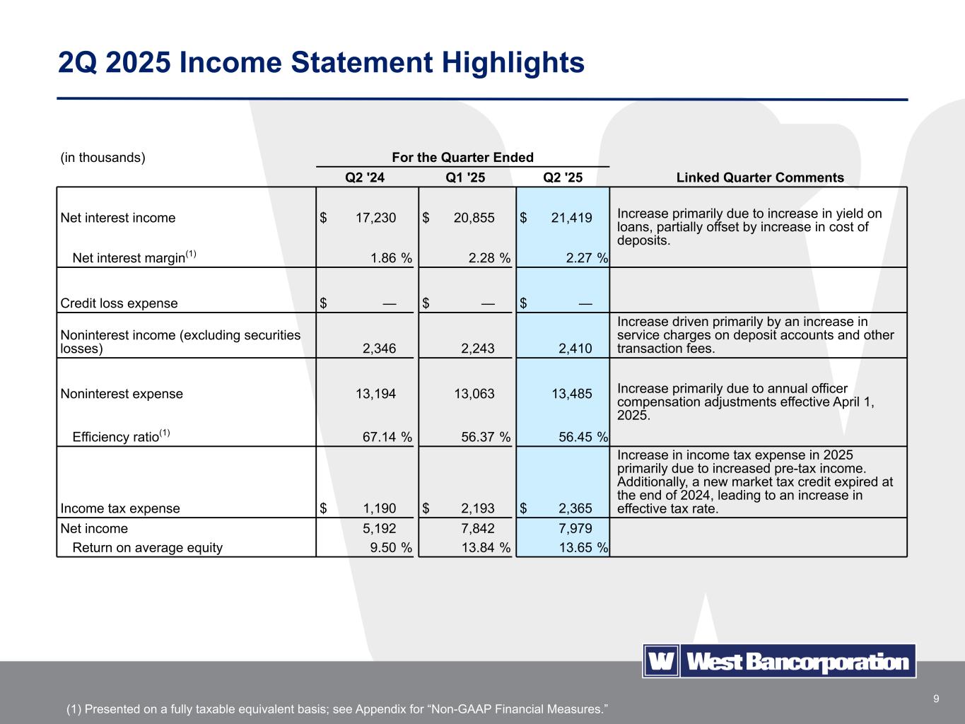 1 NASDAQ: WTBA Q2 2025 | Earnings Highlights