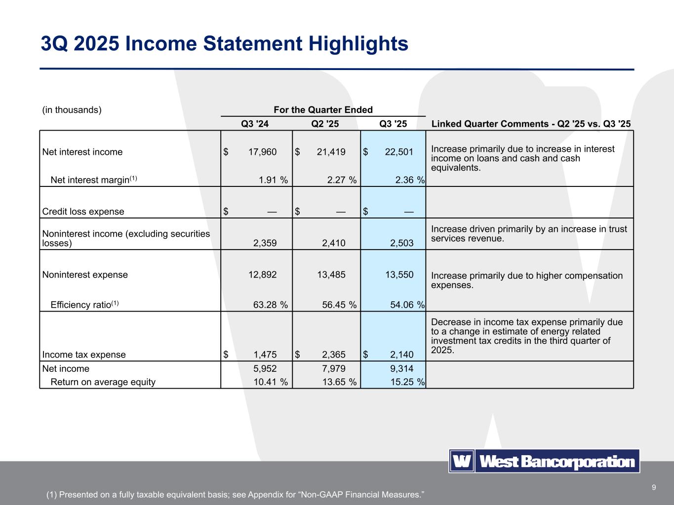 1 NASDAQ: WTBA Q3 2025 | Earnings Highlights