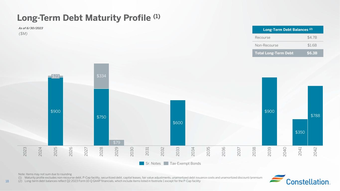 17 Q2 2023 Adjusted EBITDA* $527 $172 ($72) Labor, Contracting and Materials Q2 2022 Market and Portfolio Conditions ($17) ZEC Revenue ($102) Nuclear Outages Capacity Revenues $603 Other Q2 2023 $1,031 ($80) ($M)