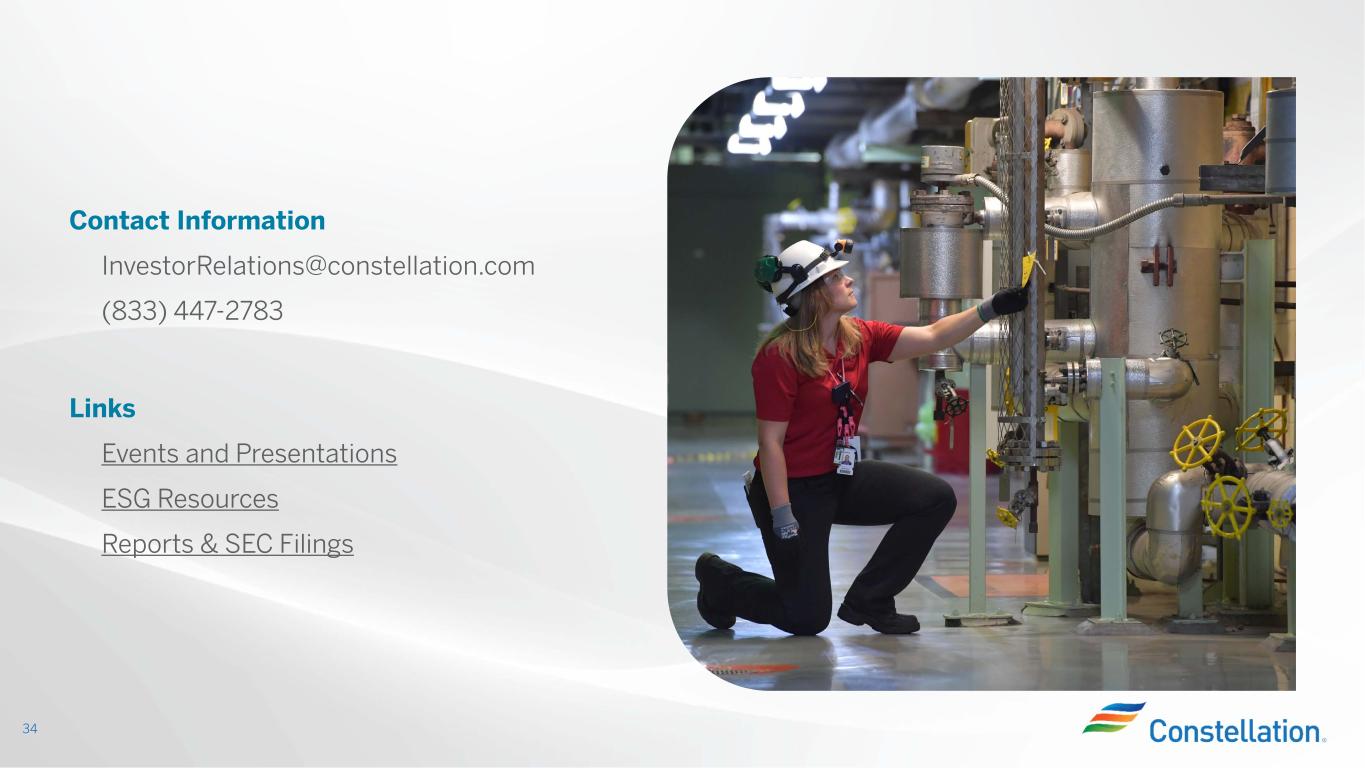 34 Contact Information InvestorRelations@constellation.com (833) 447-2783 Links Events and Presentations ESG Resources Reports & SEC Filings