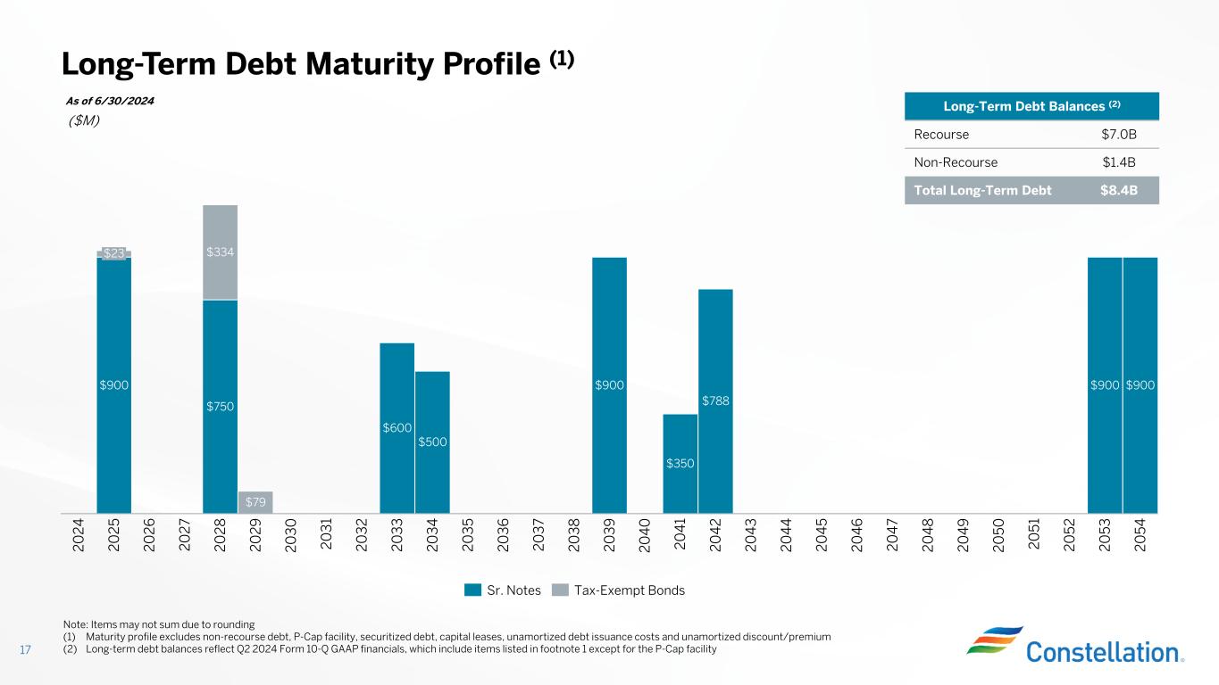 Maximum PTC Gross Receipts Threshold Power Price At Which PTC=$0 Maximum PTC Gross Receipts Threshold Power Price At Which PTC=$0 Maximum PTC Gross Receipts Threshold Power Price At Which PTC=$0 2024 15.00$ 25.00$ 43.75$ 15.00$ 25.00$ 43.75$ 15.00$ 25.00$ 43.75$ 2025 15.00$ 26.00$ 44.75$ 15.00$ 26.00$ 44.75$ 15.00$ 26.00$ 44.75$ 2026 15.00$ 26.00$ 44.75$ 15.00$ 27.00$ 45.75$ 15.00$ 27.00$ 45.75$ 2027 15.00$ 27.00$ 45.75$ 17.50$ 27.00$ 48.88$ 17.50$ 28.00$ 49.88$ 2028 15.00$ 27.00$ 45.75$ 17.50$ 28.00$ 49.88$ 17.50$ 29.00$ 50.88$ 2029 17.50$ 28.00$ 49.88$ 17.50$ 29.00$ 50.88$ 17.50$ 30.00$ 51.88$ 2030 17.50$ 28.00$ 49.88$ 17.50$ 30.00$ 51.88$ 20.00$ 32.00$ 57.00$ 2031 17.50$ 29.00$ 50.88$ 17.50$ 31.00$ 52.88$ 20.00$ 33.00$ 58.00$ 2032 17.50$ 29.00$ 50.88$ 20.00$ 32.00$ 57.00$ 20.00$ 34.00$ 59.00$ 2% Inflation 3% Inflation 4% Inflation • Starting in 2025, the maximum PTC and gross receipts threshold are subject to an inflation adjustment based on the GDP price deflator for the preceding calendar year: • Maximum PTC is rounded to nearest $2.50/MWh and gross receipts threshold is rounded to nearest $1.00/MWh Inflation of Nuclear Production Tax Credit (PTC) (1) 16 (1) See H.R. 5376 for additional details; all numbers assume that prevailing wage requirements are satisfied (2) Annual inflation adjustment is consistent with past published guidance for renewable energy credits, published annually Example Assuming 2%, 3% and 4% Inflation (2)PTC Overview Inflation Adjustment= GDP price deflator in preceeding year GDP price deflator in 2023 PTC Inflation Adjustment • The PTC is in effect through 12/31/32 • In the base year 2024, Constellation qualifies for the nuclear PTC up to $15.00/MWh; the PTC amount is reduced by 80% of gross receipts exceeding $25.00/MWh, phasing out completely after $43.75/MWh • The nuclear PTC can be credited against taxes or monetized through sale to an unrelated taxpayer