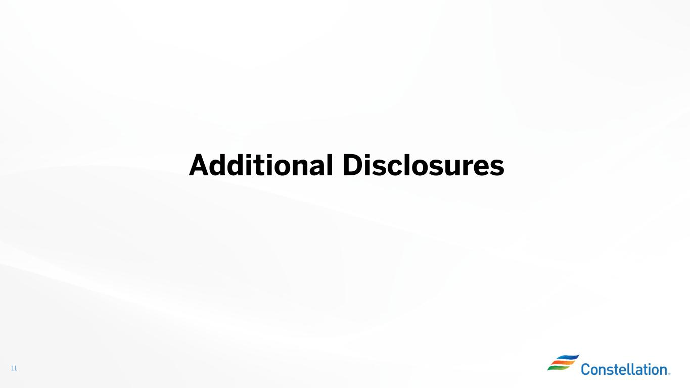 Constellation – Our Assets Are Unmatched 10 Visible, Double-Digit Long-Term Base EPS Growth Backed by the Nuclear Production Tax Credit (PTC) Best and Largest Operator of Carbon-Free, Long-Lived, 24/7 Nuclear Plants Uniquely Positioned to Support Economic Growth and Electric System Reliability Growing Product Opportunities Through Leading Customer Platform 187M MWhs of Carbon-Free Electricity Will Benefit from Higher Prices and Attribute Payments Strong Free Cash Flows and High Investment Grade Balance Sheet