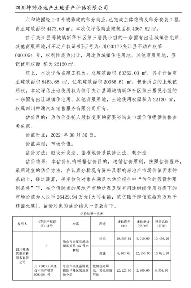 b) ZHONGHUI’s ownership of a property located at No. 157 Huaxing Road, Liuhe City, Jiajiang County (under construction) and a parcel of state-owned land in Xinhua Community, Third Residential Group, Liuhe City, Jiajiang County, intended for town residential and other commercial service purposes (hereinafter referred to as The Property).