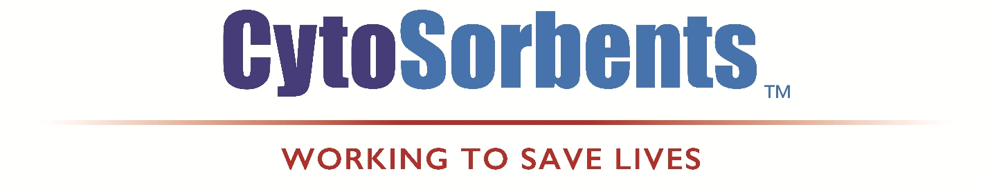 CytoSorbents Corporation is a leader in the treatment of life-threatening conditions in the intensive care unit and cardiac surgery through blood purification. CytoSorbents’ proprietary blood purification technologies are based on biocompatible, highly porous polymer beads that can actively remove toxic substances from blood and other bodily fluids by pore capture and surface adsorption. Cartridges filled with these beads can be used with standard blood pumps already in the hospital (e.g. dialysis, continuous renal replacement therapy or CRRT, extracorporeal membrane oxygenation or ECMO, and heart-lung machines), where blood is repeatedly recirculated outside the body, through our cartridges where toxic substances are