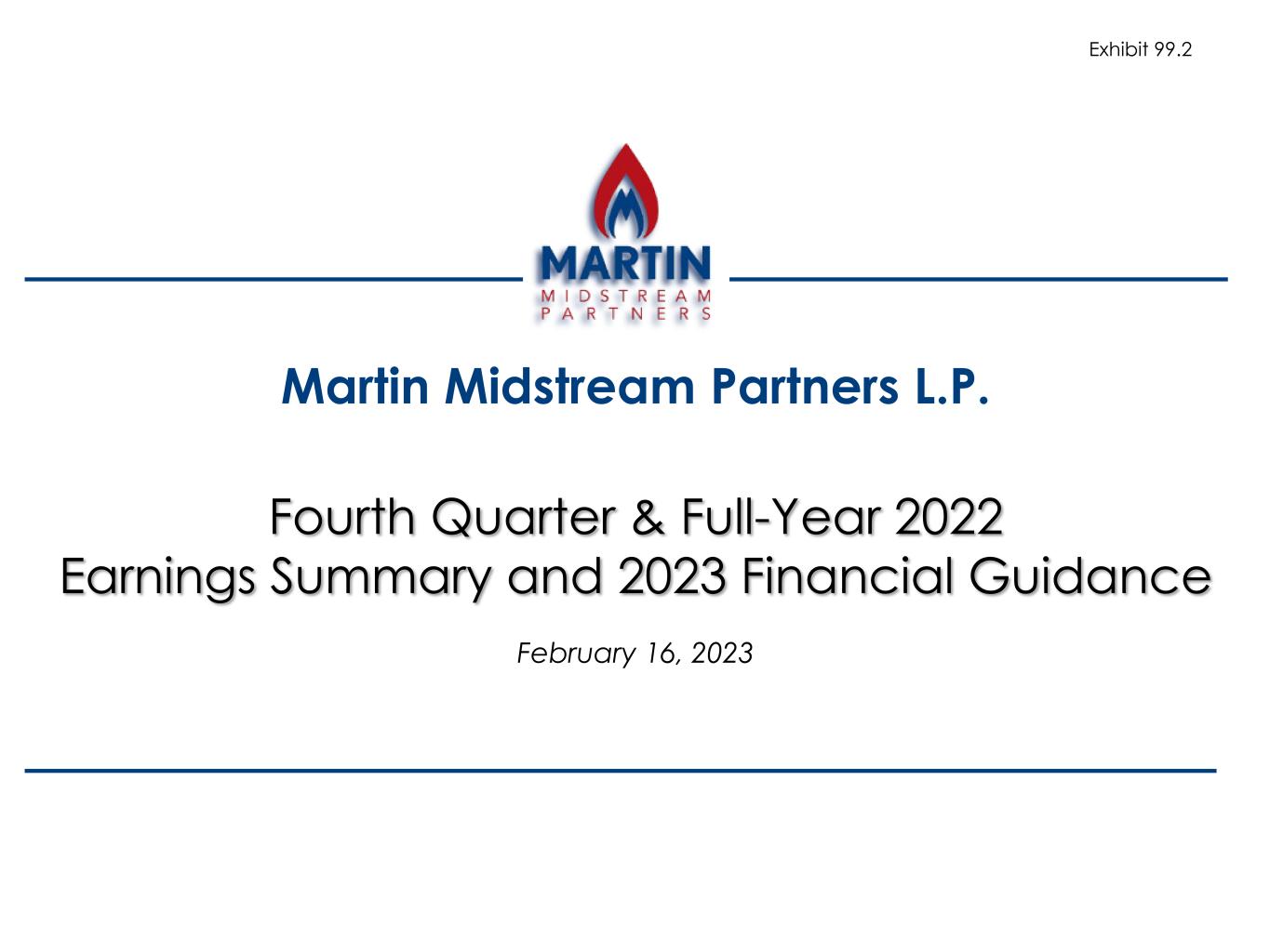 Martin Midstream Partners L.P. February 16, 2023 Fourth Quarter & Full-Year 2022 Earnings Summary and 2023 Financial Guidance Exhibit 99.2