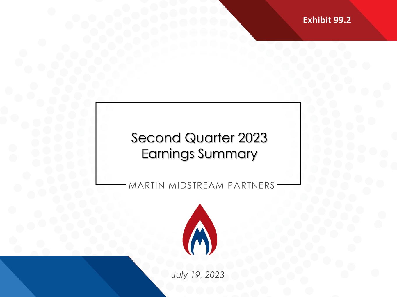 July 19, 2023 Second Quarter 2023 Earnings Summary MARTIN MIDSTREAM PARTNERS Exhibit 99.2