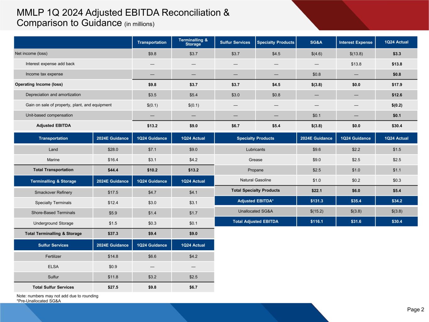 EX-99.2 3 mmlp1q2024earningssummar.htm EX-99.2 mmlp1q2024earningssummar