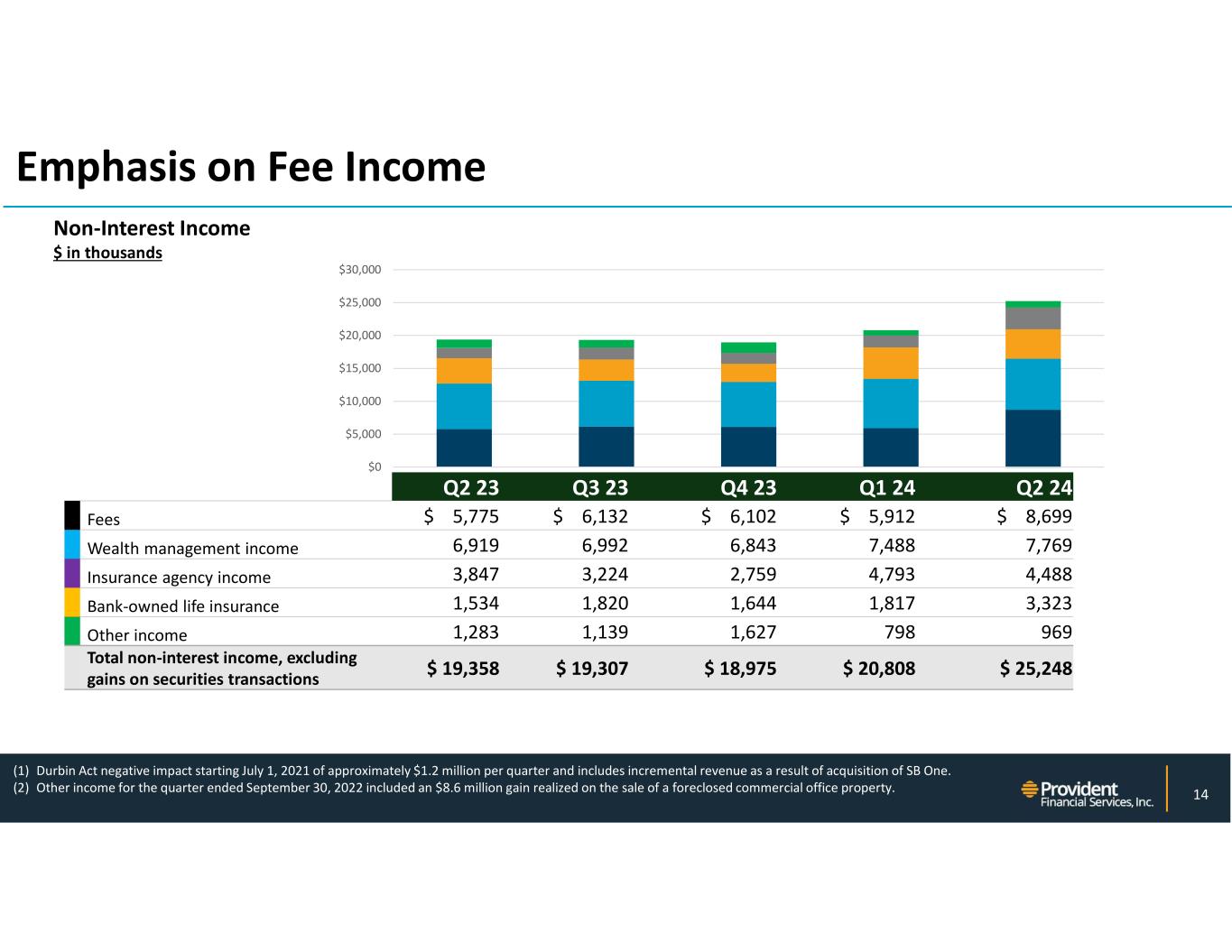 NYSE: PFS (1) See Appendix for a reconciliation of GAAP and non-GAAP financial measures. Net Interest Margin Analysis 13 2.53% 2.67% 2.79% 2.87% 3.40% 5.24% 5.37% 5.50% 5.51% 6.05% 4.73% 4.89% 5.04% 5.06% 5.67% Q2 2023 Q3 2023 Q4 2023 Q1 2024 Q2 2024 Asset Yields Securities Net Loan Total interest-earning assets 1.85% 2.22% 2.47% 2.60% 2.84% 3.41% 3.74% 3.71% 3.60% 3.83% 2.13% 2.50% 2.71% 2.80% 3.09% Q2 2023 Q3 2023 Q4 2023 Q1 2024 Q2 2024 Interest-Bearing Liabilities Total Deposits Total Borrowings Total Interest-Bearing Liabilities 3.11 2.96 2.92 2.87 3.21 Q2 2023 Q3 2023 Q4 2023 Q1 2024 Q2 2024 Net Interest Margin 2.74 3.12% 3.20% 3.21% 2.40% 2.50% 2.60% 2.70% 2.80% 2.90% 3.00% 3.10% 3.20% 3.30% Core Margin +Loans +Securities +Liabilities Core Margin Plus Accretion of Purchase Accounting Adjustments