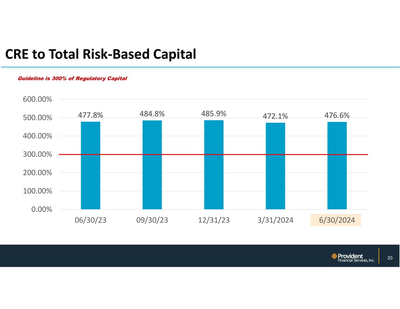 NYSE: PFS Guideline is 300% of Regulatory Capital CRE to Total Risk-Based Capital 20 477.8% 484.8% 485.9% 472.1% 476.6% 0.00% 100.00% 200.00% 300.00% 400.00% 500.00% 600.00% 06/30/23 09/30/23 12/31/23 3/31/2024 6/30/2024