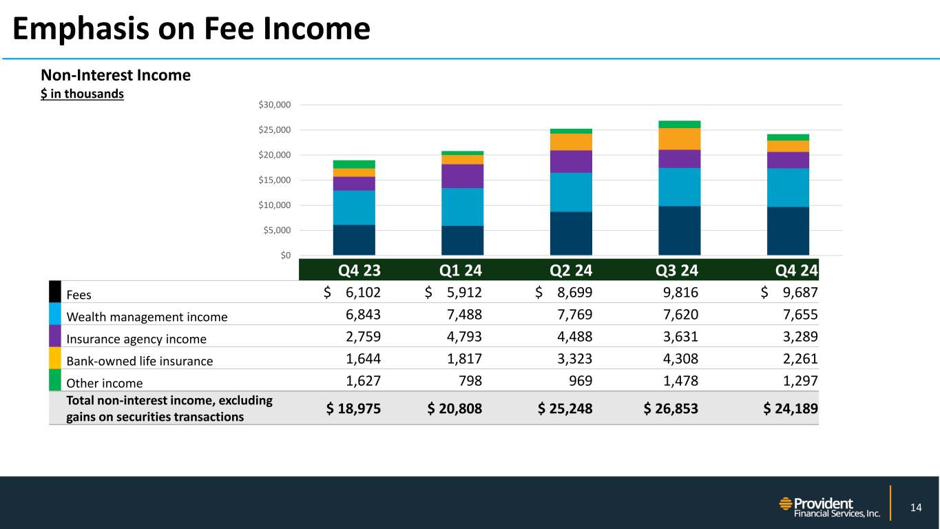 NYSE: PFS Net Interest Margin Analysis 13 2.79% 2.87% 3.40% 3.69% 3.78% 5.50% 5.51% 6.05% 6.21% 5.99% 5.04% 5.06% 5.67% 5.84% 5.66% Q4 2023 Q1 2024 Q2 2024 Q3 2024 Q4 2024 Asset Yields Securities Net Loans Total interest-earning assets 2.47% 2.60% 2.84% 2.96% 2.81% 3.71% 3.60% 3.83% 3.73% 3.64% 2.71% 2.80% 3.09% 3.19% 3.03% Q4 2023 Q1 2024 Q2 2024 Q3 2024 Q4 2024 Interest-Bearing Liabilities Total Deposits Total Borrowings Total Interest-Bearing Liabilities 2.92% 2.87% 3.21% 3.31% 3.28% Q4 2023 Q1 2024 Q2 2024 Q3 2024 Q4 2024 Net Interest Margin 2.85% 3.18% 3.28% 3.28% 2.60% 2.70% 2.80% 2.90% 3.00% 3.10% 3.20% 3.30% 3.40% Core Margin +Loans +Securities +Liabilities Core Margin Plus Accretion of Purchase Accounting Adjustments