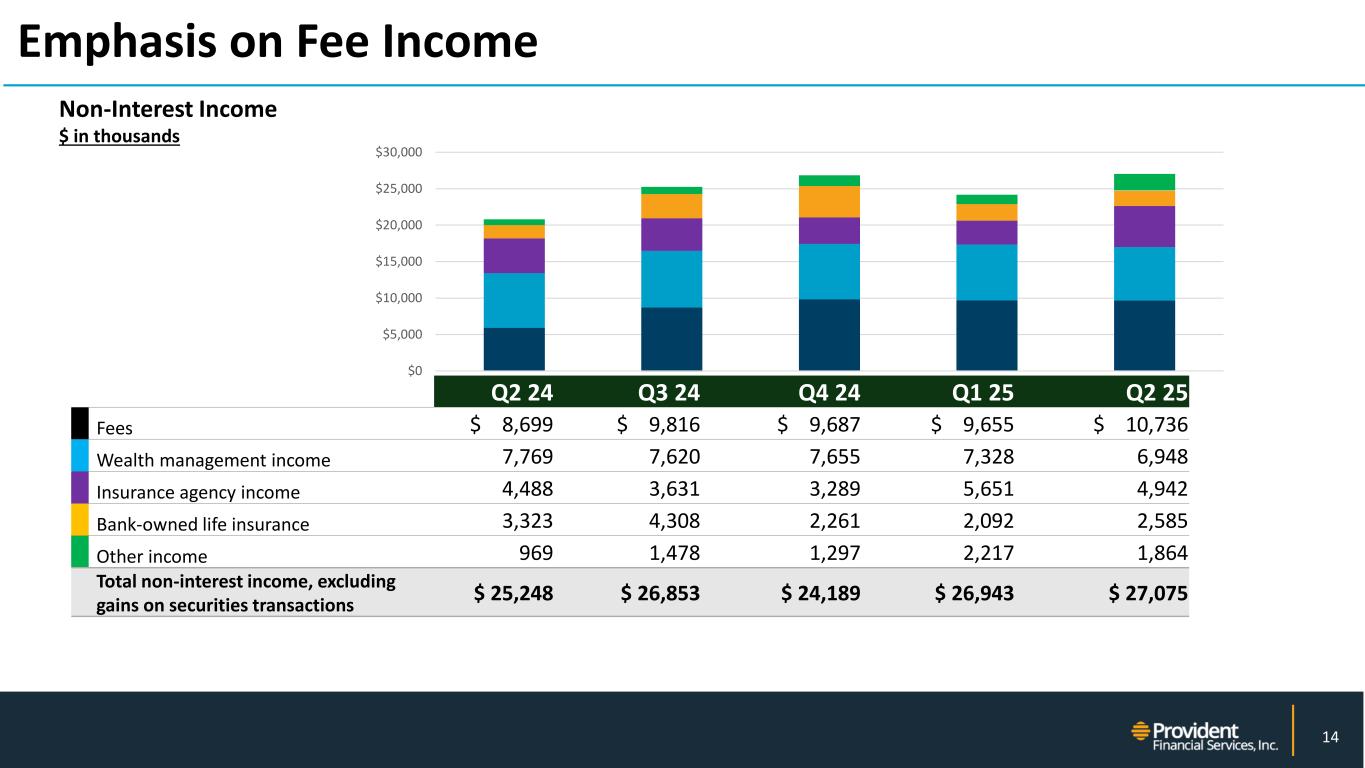 NYSE: PFS Net Interest Margin Analysis 13 3.07% 3.56% 3.55% 3.73% 3.80% 6.05% 6.21% 5.99% 5.95% 6.01% 5.67% 5.84% 5.66% 5.63% 5.68% Q2 2024 Q3 2024 Q4 2024 Q1 2025 Q2 2025 Asset Yields Securities Net Loans Total interest-earning assets 2.84% 2.96% 2.81% 2.64% 2.62% 3.83% 3.73% 3.64% 3.76% 3.94% 3.09% 3.19% 3.03% 2.90% 2.94% Q2 2024 Q3 2024 Q4 2024 Q1 2025 Q2 2025 Interest-Bearing Liabilities Total Deposits Total Borrowings Total Interest-Bearing Liabilities 3.21% 3.31% 3.28% 3.34% 3.36% Q2 2024 Q3 2024 Q4 2024 Q1 2025 Q2 2025 Net Interest Margin 2.93% 3.29% 3.38% 3.36% 2.70% 2.80% 2.90% 3.00% 3.10% 3.20% 3.30% 3.40% 3.50% Core Margin +Loans +Securities -Liabilities Core Margin Plus Accretion of Purchase Accounting Adjustments