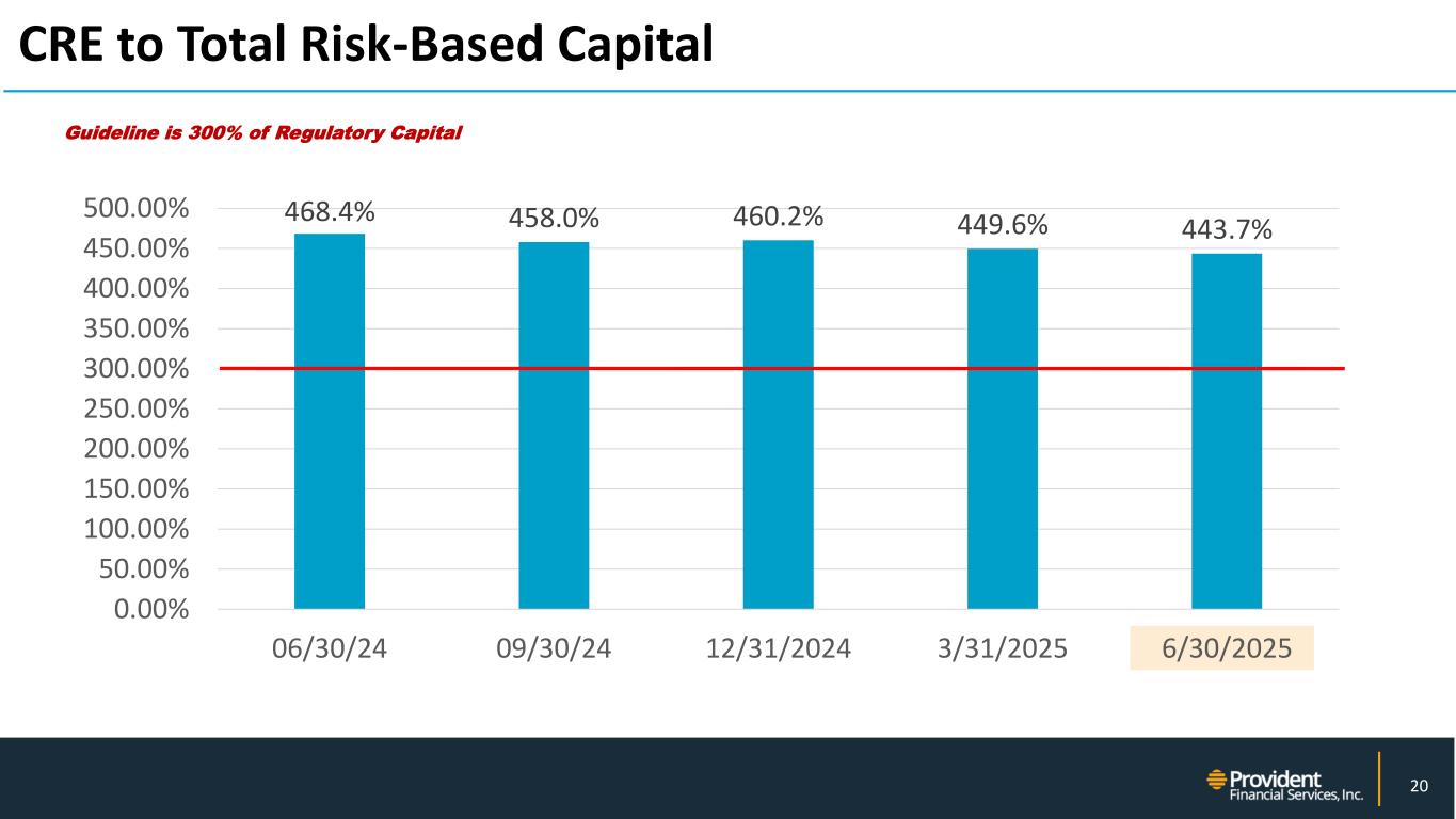 NYSE: PFS 1.47% 1.48% 1.53% 1.61% 1.64% Q2 2024 Q3 2024 Q4 2024 Q1 2025 Q2 2025 Core PTPP ROAA (Annualized Core PTPP earnings/average assets) CORE PTPP ROAA(1) (1) See Appendix for a reconciliation of GAAP and non-GAAP financial measures. Strong Core Performance 18 19.21% 19.77% 20.31% 21.18% 21.26% Q2 2024 Q3 2024 Q4 2024 Q1 2025 Q2 2025 Core PTPP ROATE (Annualized Core net income/average tangible stockholders' equity) CORE PTPP ROATE(1) 13.26% 13.48% 13.91% 14.63% 14.88% Q2 2024 Q3 2024 Q4 2024 Q1 2025 Q2 2025 Core PTPP ROAE (Annualized Core net income/average stockholders' equity) CORE PTPP ROAE (1)