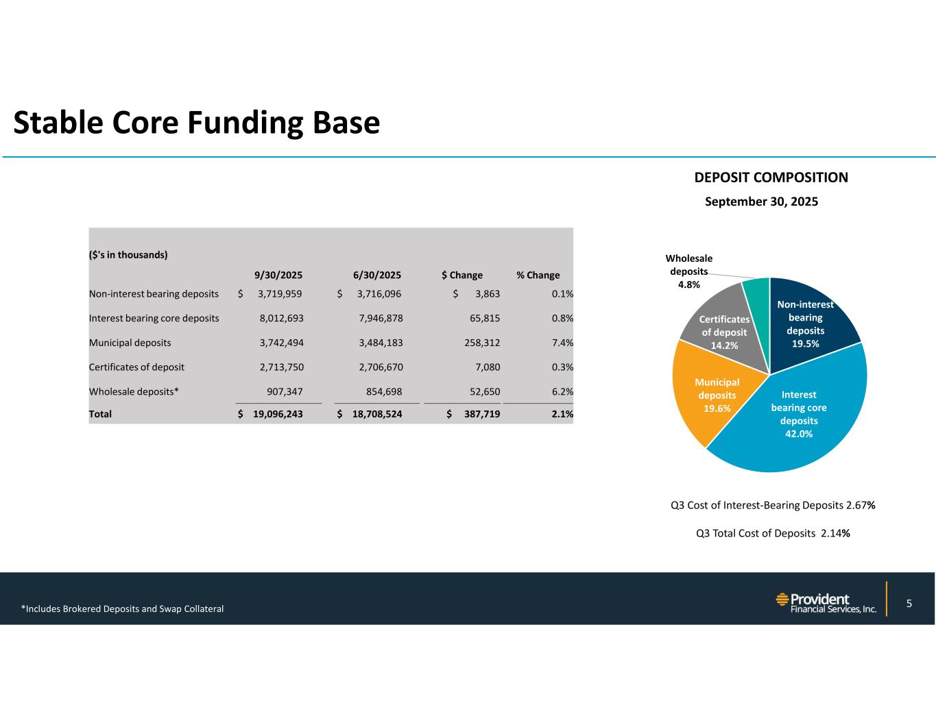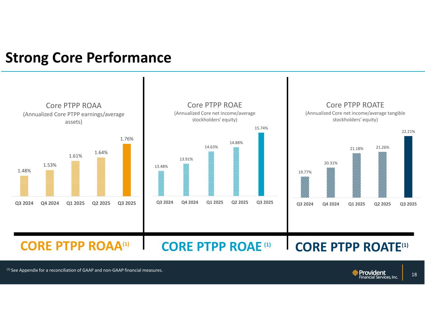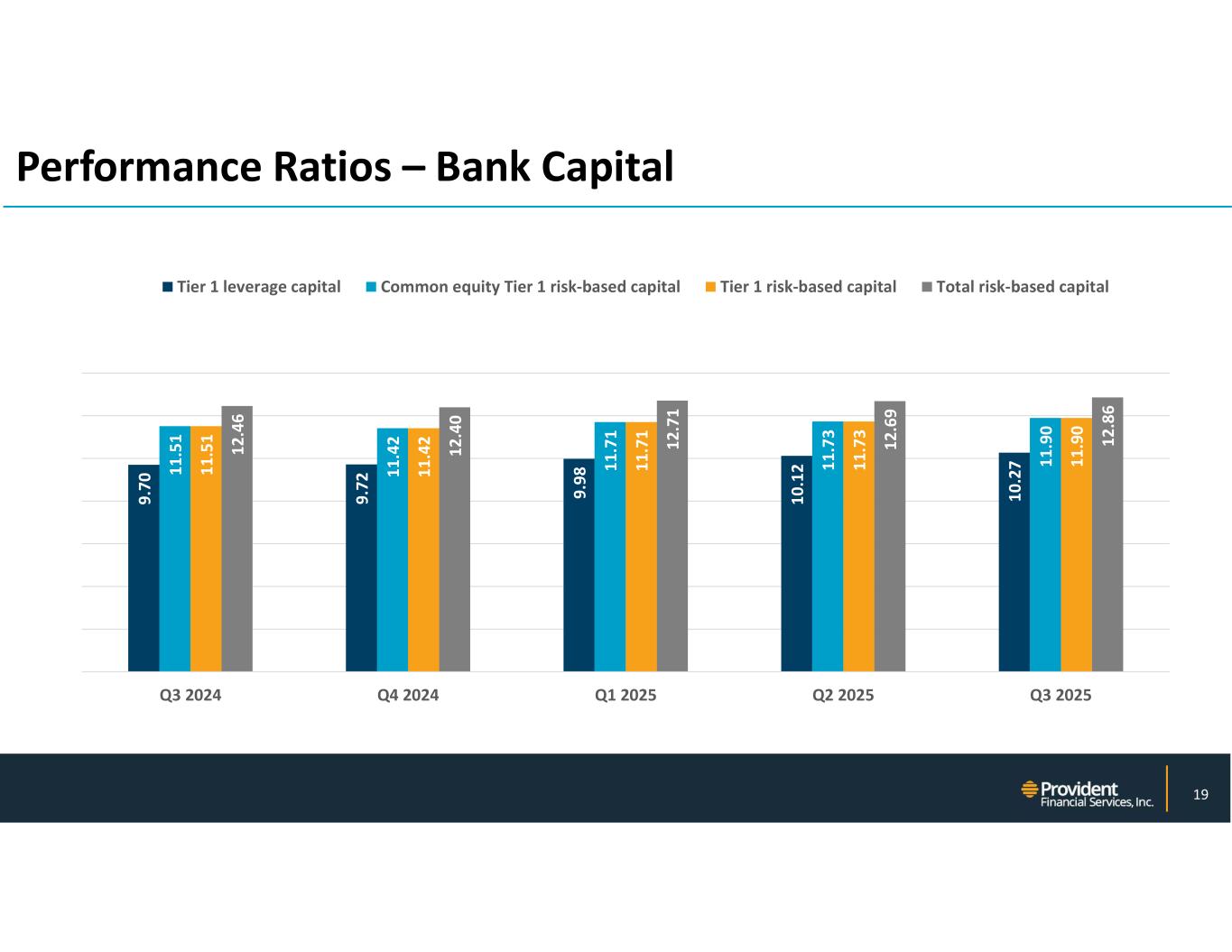 NYSE: PFS 1.48% 1.53% 1.61% 1.64% 1.76% Q3 2024 Q4 2024 Q1 2025 Q2 2025 Q3 2025 Core PTPP ROAA (Annualized Core PTPP earnings/average assets) CORE PTPP ROAA(1) (1) See Appendix for a reconciliation of GAAP and non-GAAP financial measures. Strong Core Performance 18 19.77% 20.31% 21.18% 21.26% 22.21% Q3 2024 Q4 2024 Q1 2025 Q2 2025 Q3 2025 Core PTPP ROATE (Annualized Core net income/average tangible stockholders' equity) CORE PTPP ROATE(1) 13.48% 13.91% 14.63% 14.88% 15.74% Q3 2024 Q4 2024 Q1 2025 Q2 2025 Q3 2025 Core PTPP ROAE (Annualized Core net income/average stockholders' equity) CORE PTPP ROAE (1)