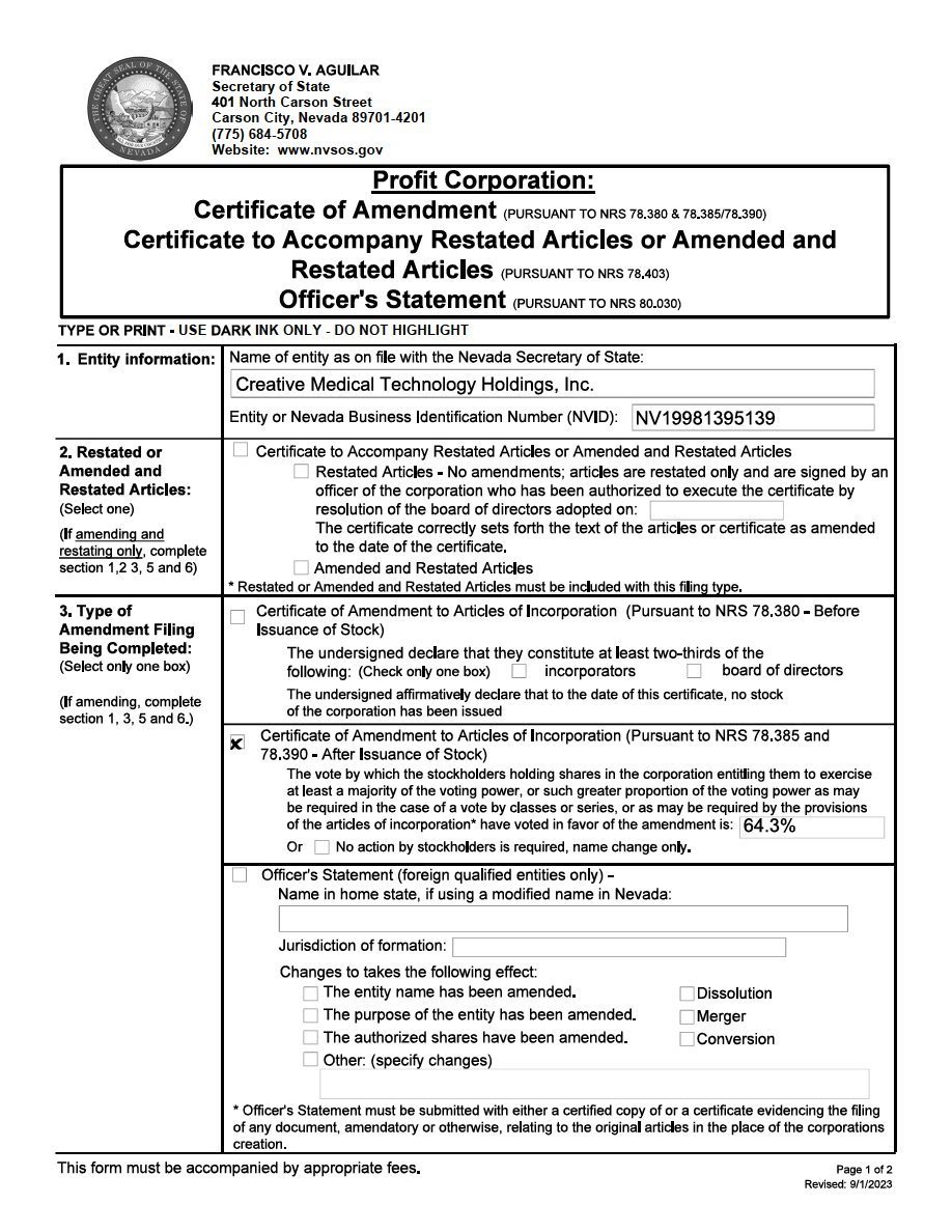 EX-3.1 2 celz_ex31.htm CERTIFICATE celz_ex31.htm