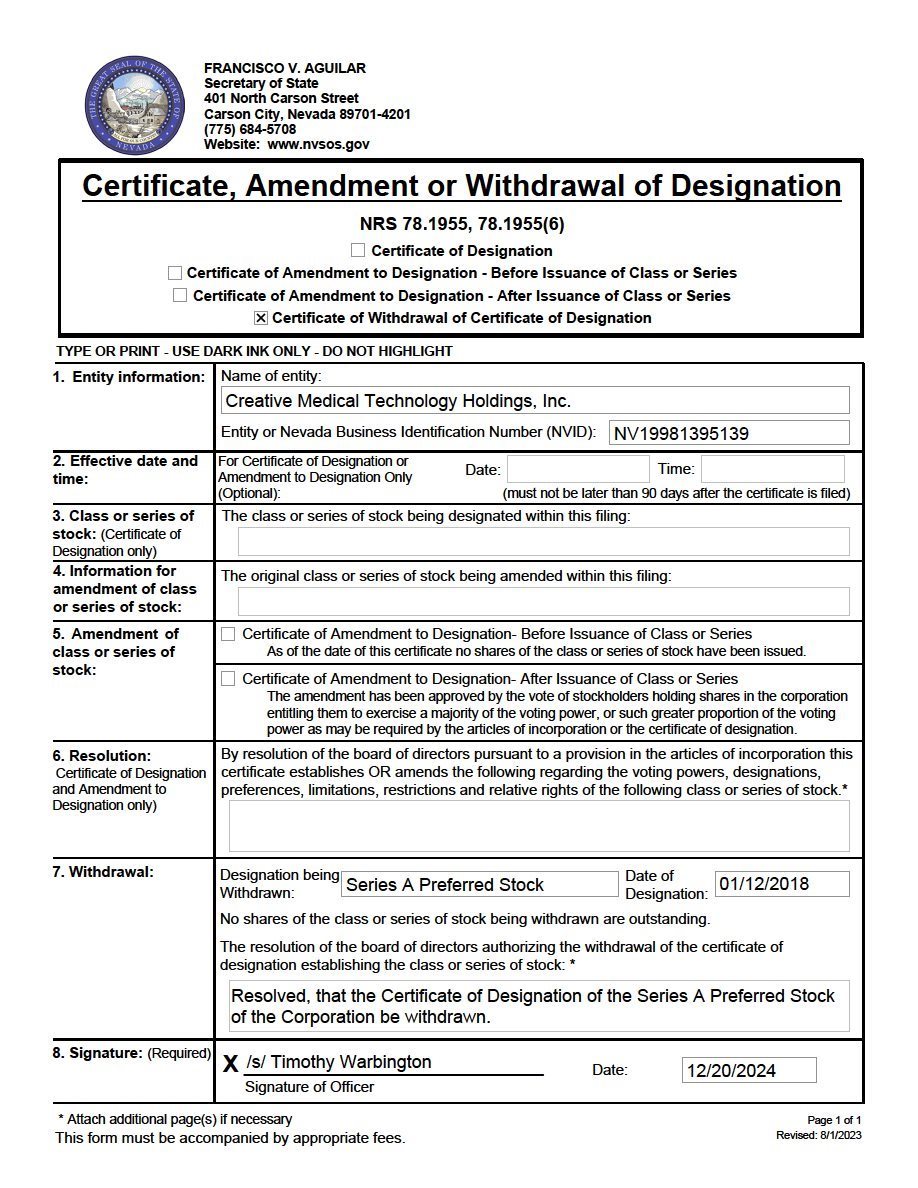 EX-3.2 3 celz_ex32.htm CERTIFICATE celz_ex32.htm