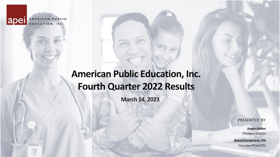PRESENTED BY Angela Selden President and CEO Richard Sunderland, CPA Executive VP and CFO American Public Education, Inc. Fourth Quarter 2022 Results March 14, 2023