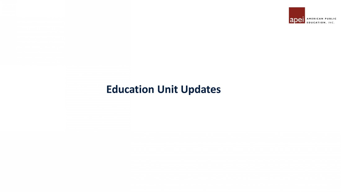 Education Unit Updates