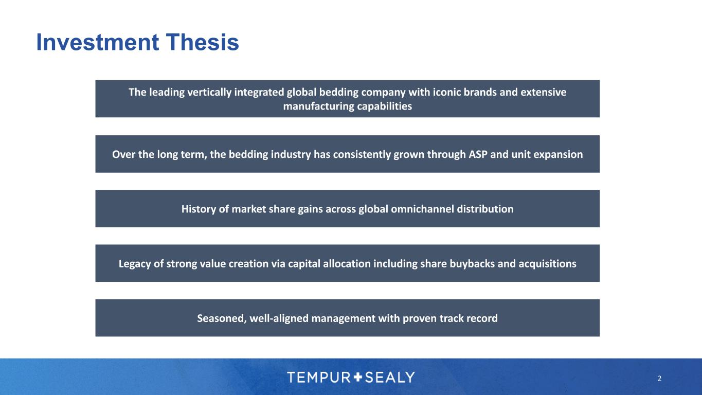 We continue to demonstrate the resilience of our business model as we generate profits, invest in our business, return capital to shareholders, and outperform the global bedding industry. TEMPUR SEALY INTERNATIONAL, INC., TPX “ “ 1