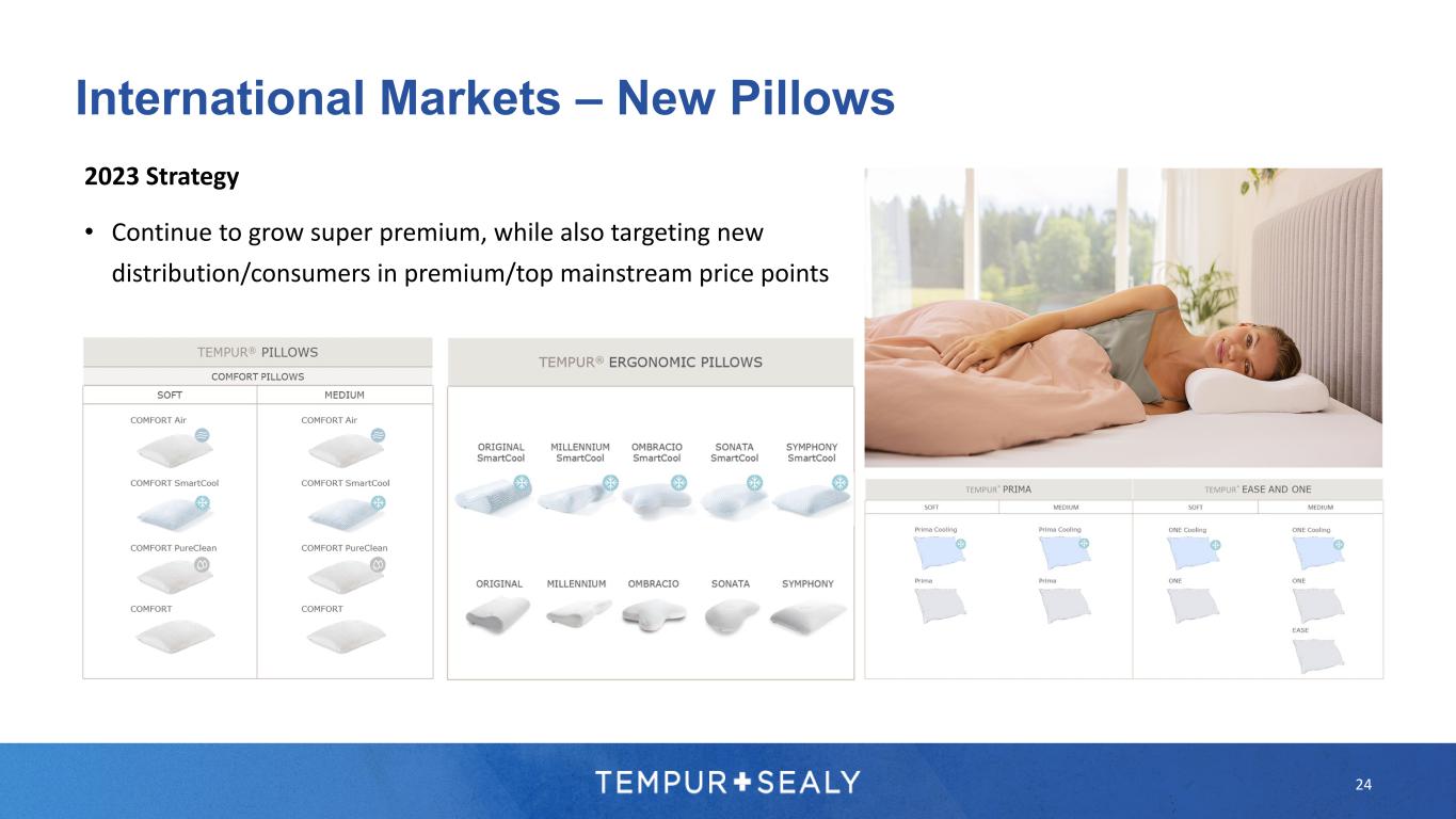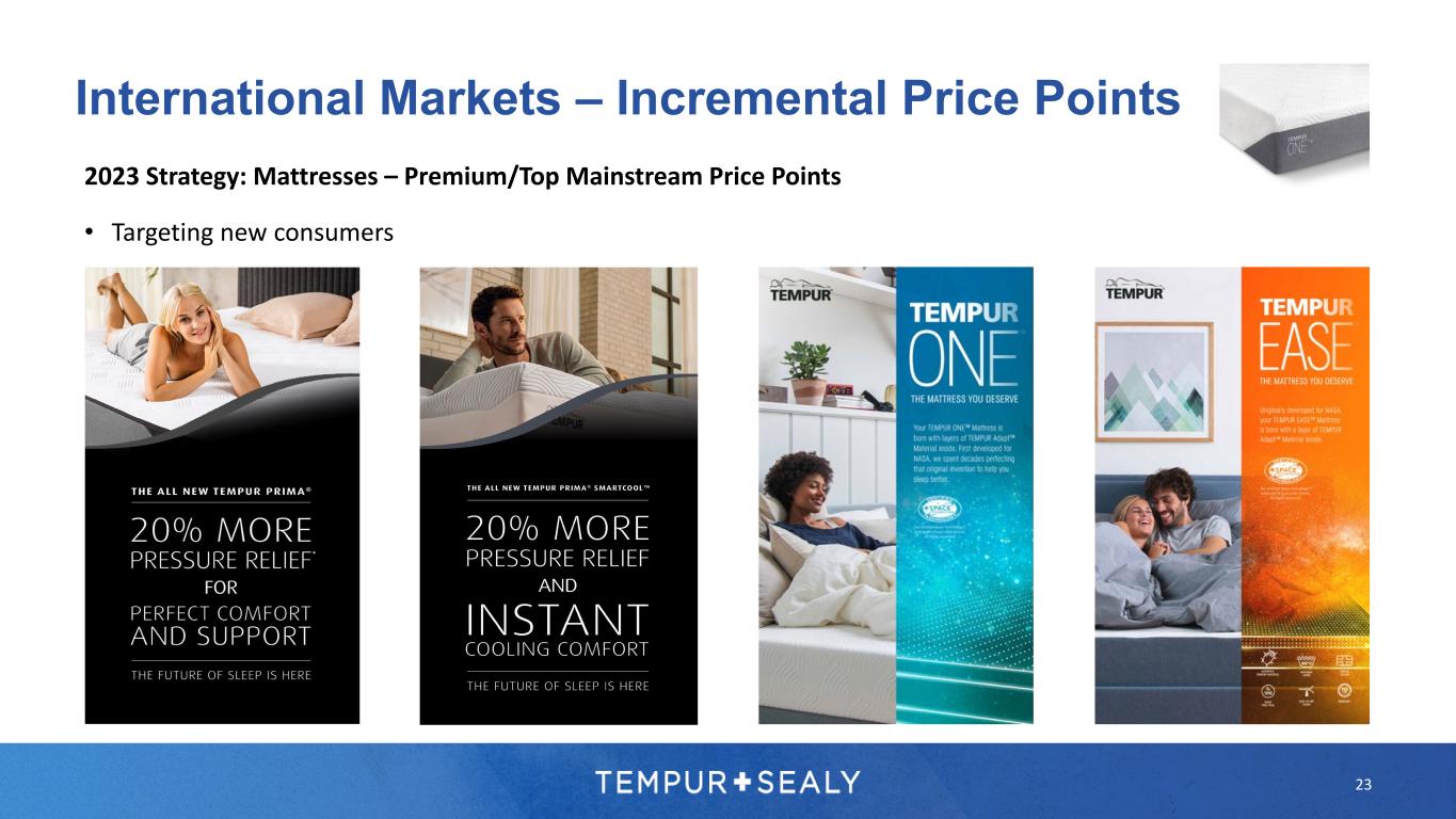 23 International Markets – Incremental Price Points 2023 Strategy: Mattresses – Premium/Top Mainstream Price Points • Targeting new consumers