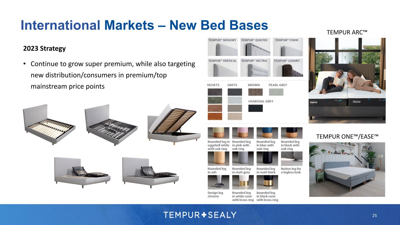 24 International Markets – New Pillows 2023 Strategy • Continue to grow super premium, while also targeting new distribution/consumers in premium/top mainstream price points