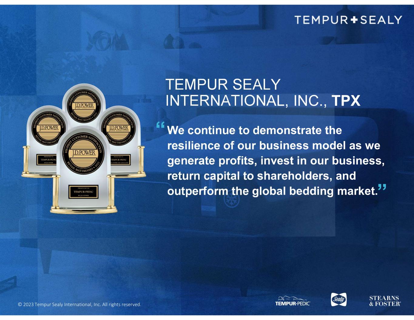 © 2023 Tempur Sealy International, Inc. All rights reserved. We continue to demonstrate the resilience of our business model as we generate profits, invest in our business, return capital to shareholders, and outperform the global bedding market. TEMPUR SEALY INTERNATIONAL, INC., TPX “ “