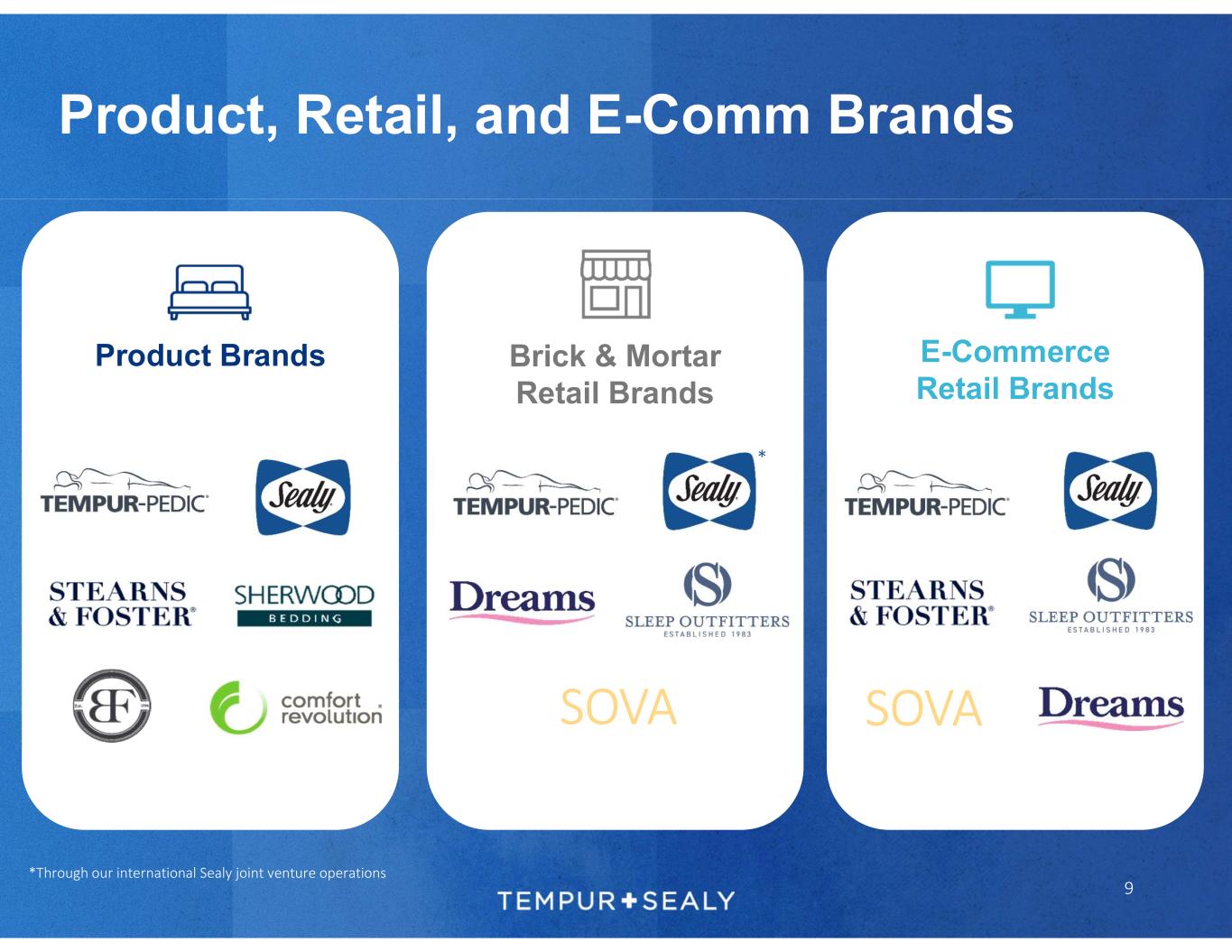 Product, Retail, and E-Comm Brands 9 E-Commerce Retail Brands SOVA Product Brands Brick & Mortar Retail Brands SOVA * *Through our international Sealy joint venture operations