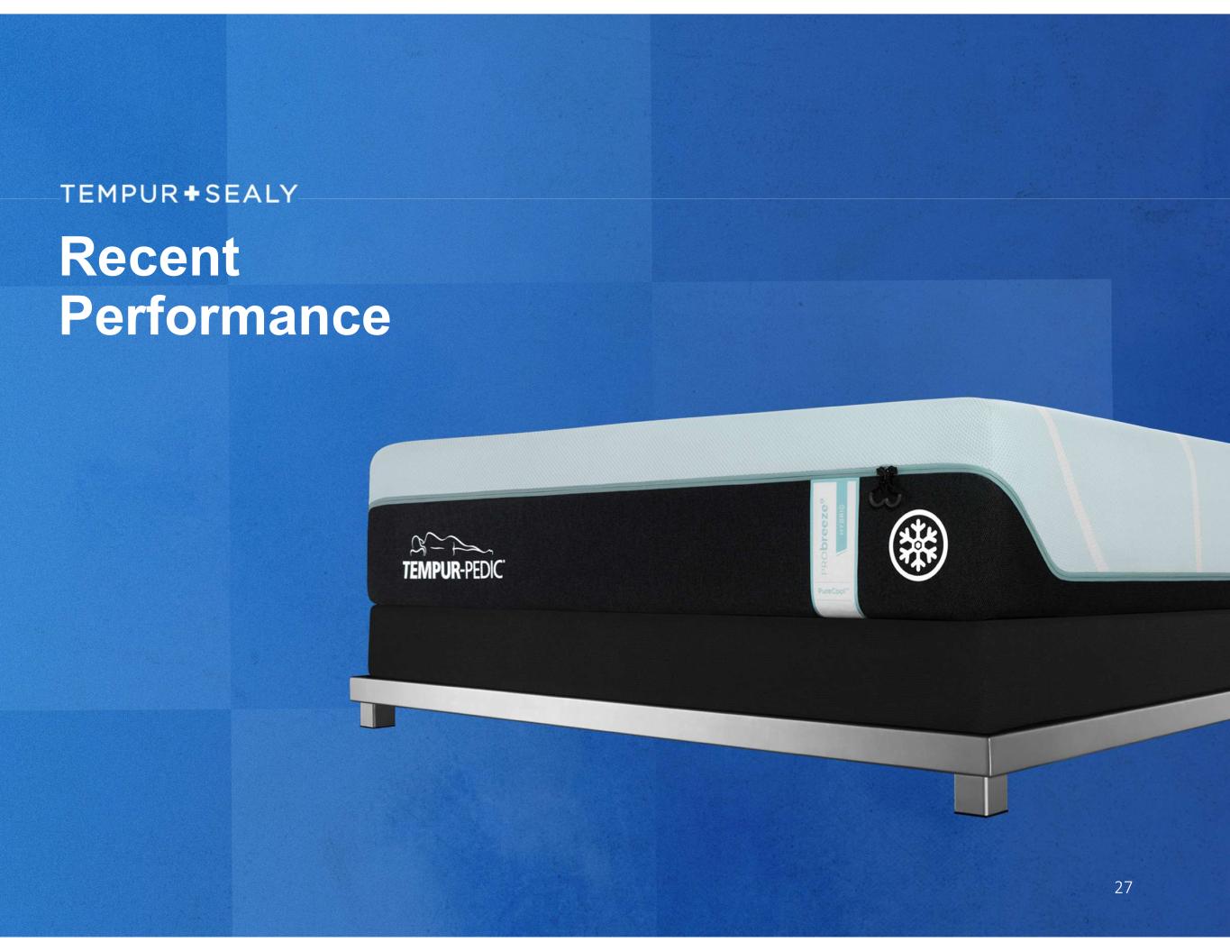 Expanding Global Licensing Sales Sealy Manufacturing Licensees: • Our 27 licensee manufacturing facilities generate high return on investment • They represent a low-risk opportunity to introduce our brands and products in regions in which we do not currently operate, primarily across EMEA, APAC, and Latin America Brand Extension Licensees: • We license our Tempur-Pedic, Sealy and Stearns & Foster brands across North America, Europe and Asia, to drive incremental profits and expand brand awareness • Licensed products are complementary to our core operations and include sleep-adjacent categories such as bedding, pajamas, and pet sleep 26 Significantly increases global brand awareness and drives incremental profits