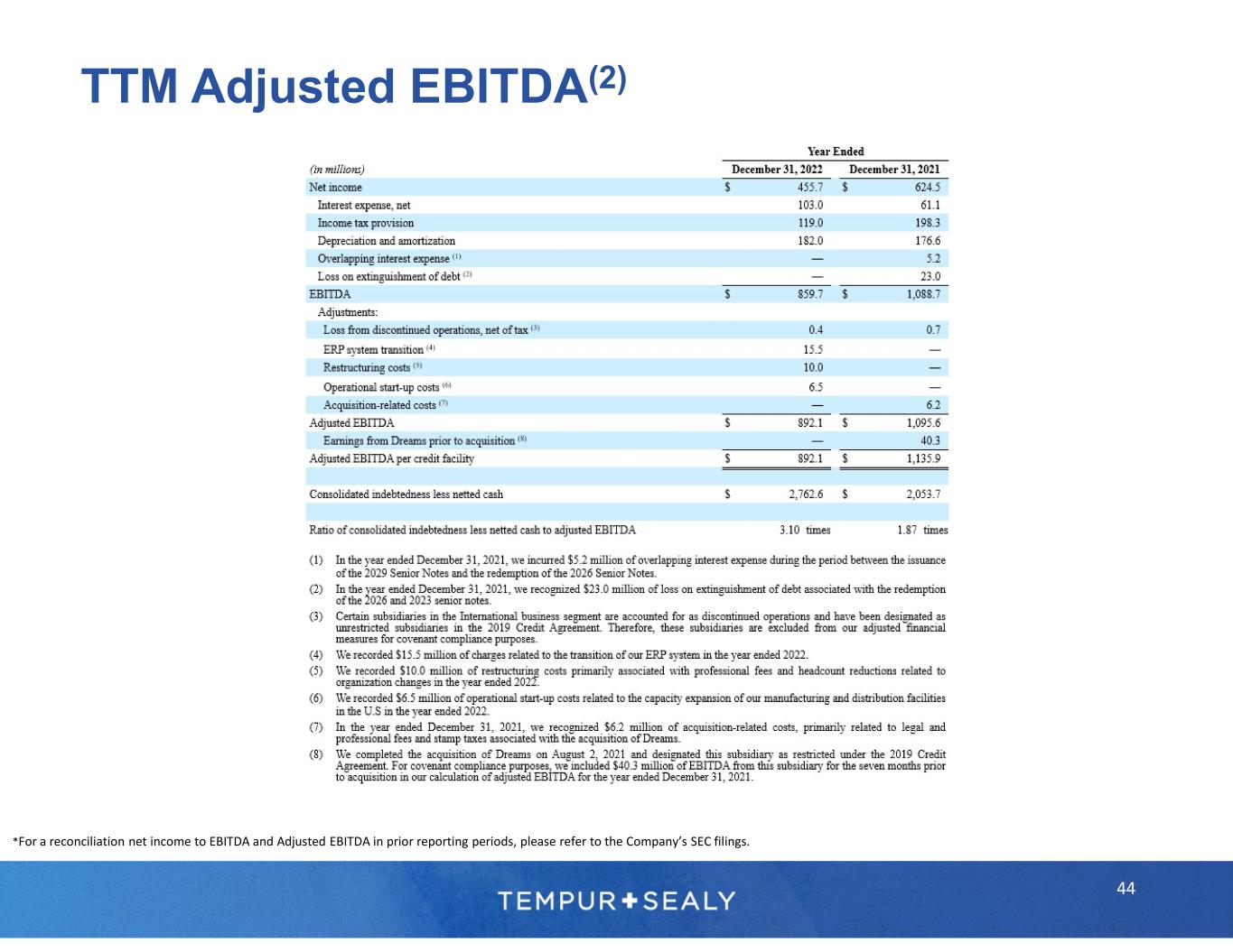 44 TTM Adjusted EBITDA(2) *For a reconciliation net income to EBITDA and Adjusted EBITDA in prior reporting periods, please refer to the Company’s SEC filings.