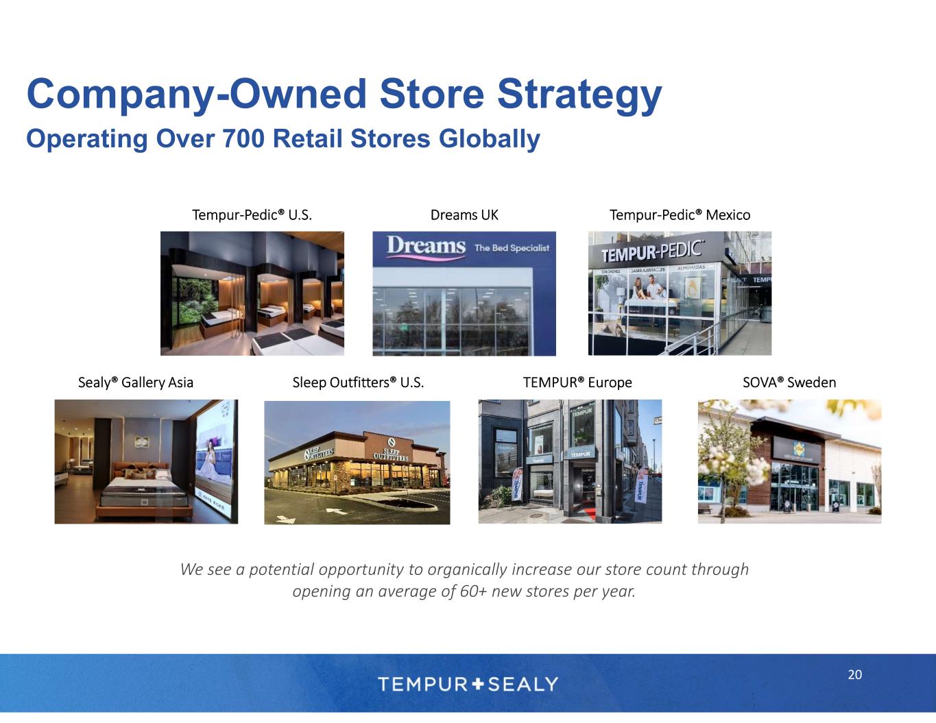 TEMPUR® EuropeSealy® Gallery Asia SOVA® SwedenSleep Outfitters® U.S. Tempur-Pedic® U.S. Tempur-Pedic® MexicoDreams UK We see a potential opportunity to organically increase our store count through opening an average of 60+ new stores per year. 20 Company-Owned Store Strategy Operating Over 700 Retail Stores Globally