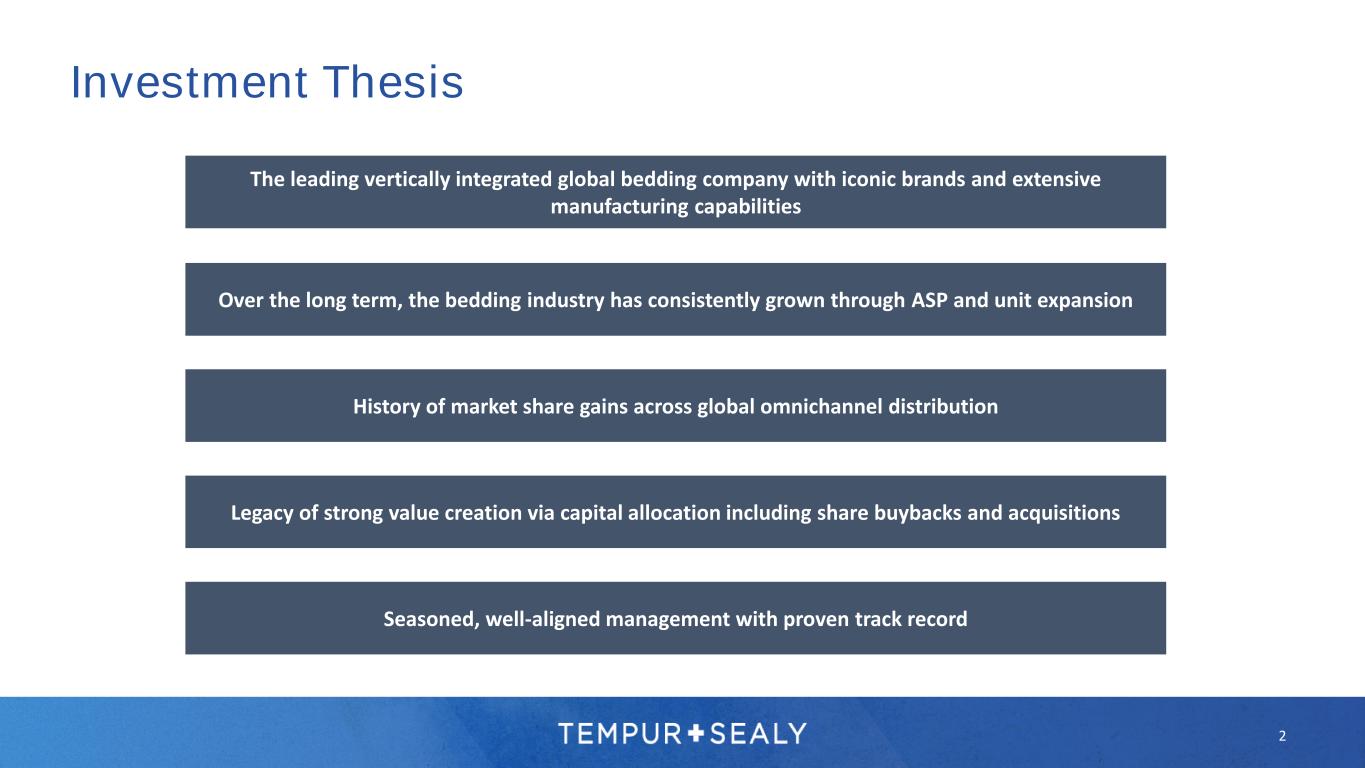 We continue to demonstrate the resilience of our business model as we generate profits, invest in our business, return capital to shareholders, and outperform the global bedding industry. TEMPUR SEALY INTERNATIONAL, INC., TPX “ “ 1