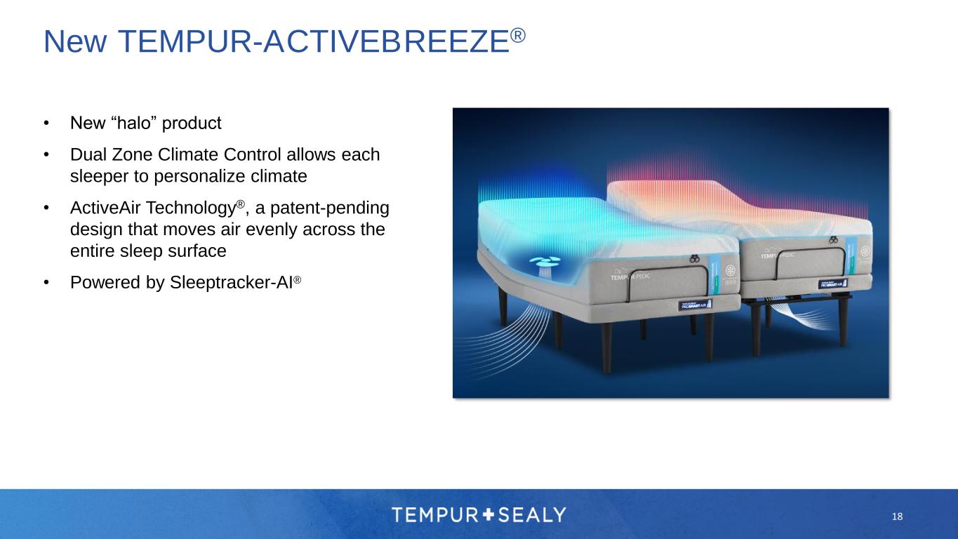 New TEMPUR-LUXEADAPT® • 20% more TEMPUR® material paired with our new Ergonomic Support Layer • The ultimate in ache and pain relief • Enhanced merchandising includes a new Medium Hybrid to broaden appeal 17