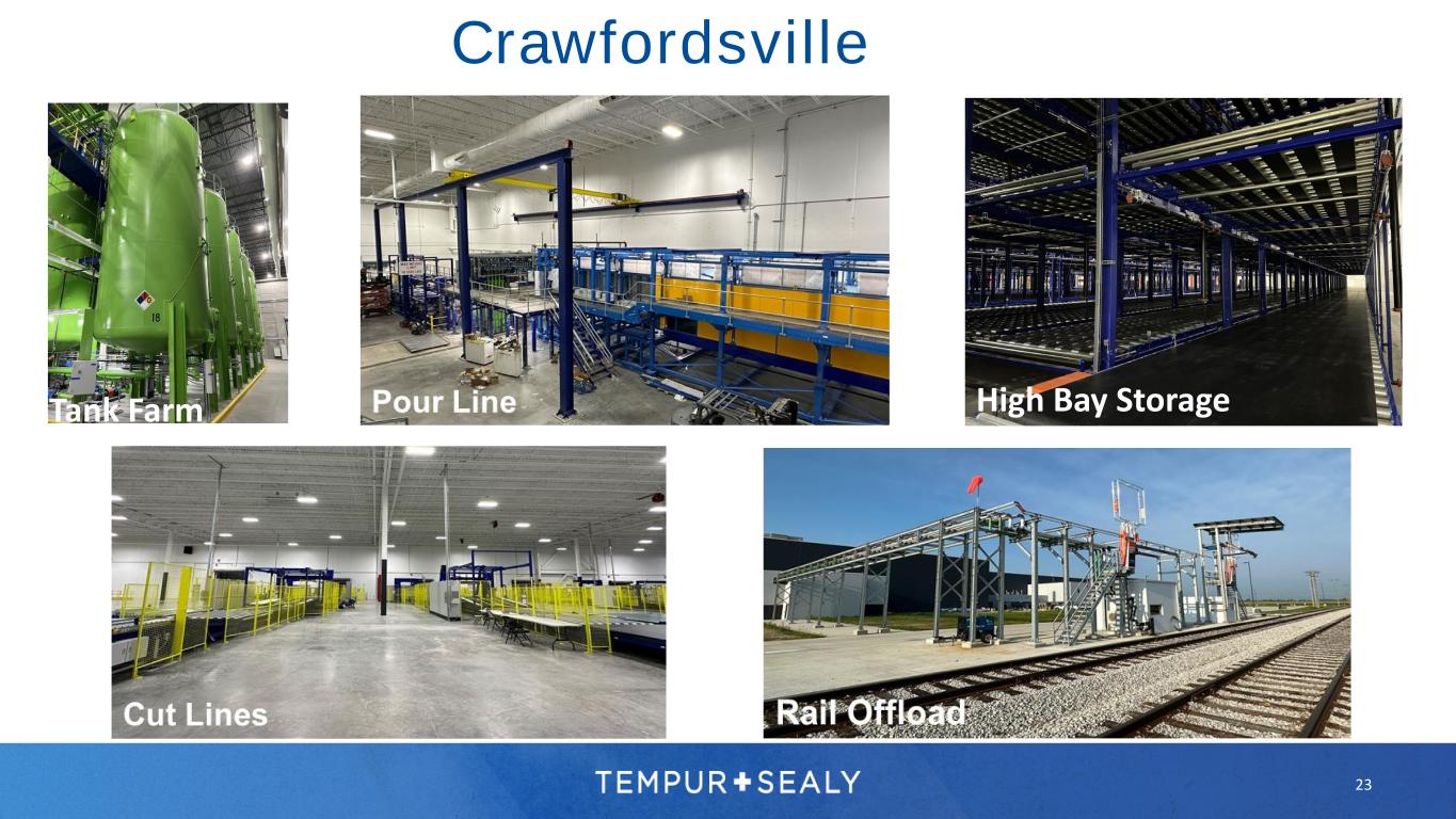 Crawfordsville, Indiana 750,000 sq ft facility to enhance our ability to service our customers by ensuring product availability to meet increased demand in the premium sector, creating shorter lead times and reduced per unit logistics cost in the Northeast market 22