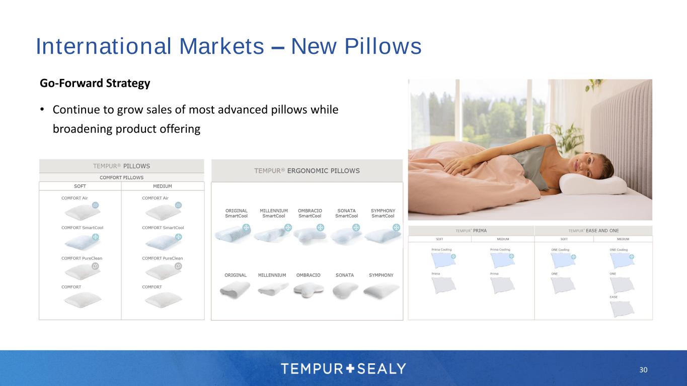 29 International Markets – Broadening Assortment Go-Forward Strategy: Mattresses – Wider range of consumer needs • Targeting new consumers