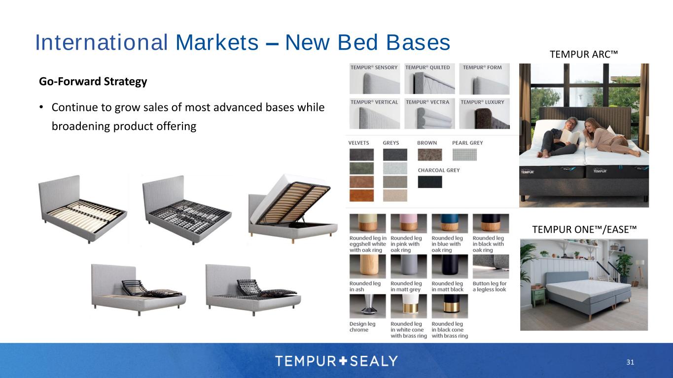 30 International Markets – New Pillows Go-Forward Strategy • Continue to grow sales of most advanced pillows while broadening product offering