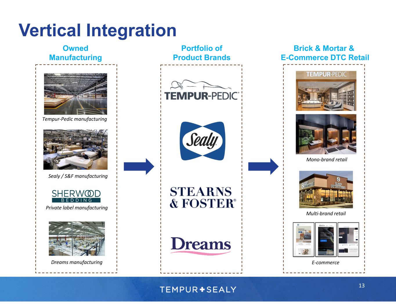 • Significant worldwide sales growth  • Highly profitable and rapidly expanding • Direct customer relationships Ecommerce • Luxury Tempur‐Pedic®, Dreams, and  multi‐branded showroom experiences • Operate over 750 stores worldwide and expanding  direct customer relationships • Highly profitable Company- Owned Stores • Third‐party retailers are our largest distribution  channel • Significant private label opportunity • Valued win‐win relationships with retailers Wholesale Successful Omni-Distribution Platform 12