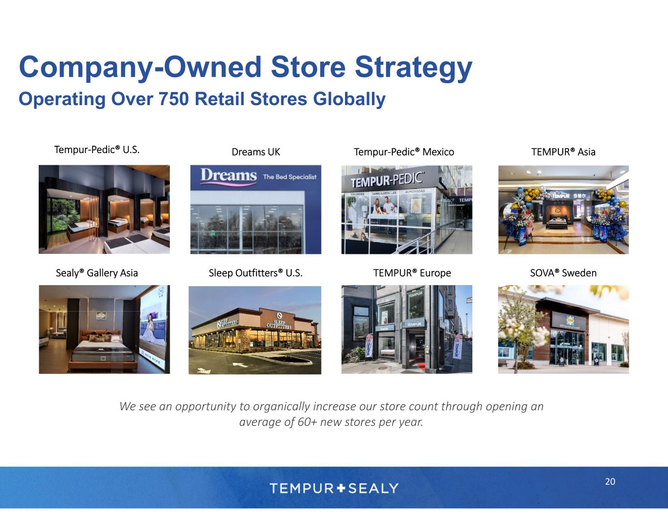 TEMPUR® EuropeSealy® Gallery Asia SOVA® SwedenSleep Outfitters® U.S. Tempur‐Pedic® U.S. Tempur‐Pedic® MexicoDreams UK We see an opportunity to organically increase our store count through opening an  average of 60+ new stores per year. 20 Company-Owned Store Strategy Operating Over 750 Retail Stores Globally TEMPUR® Asia