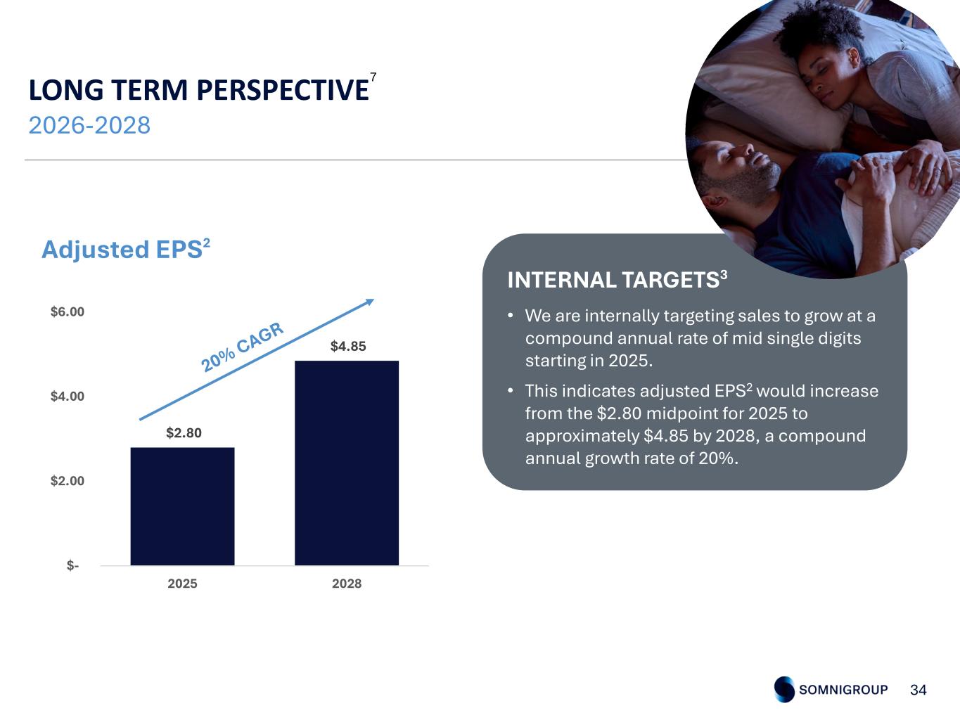 LONG TERM PERSPECTIVE 7 34 2026-2028 $2.80 $4.85 $- $2.00 $4.00 $6.00 2025 2028 Adjusted EPS2 INTERNAL TARGETS3 • We are internally targeting sales to grow at a compound annual rate of mid single digits starting in 2025. • This indicates adjusted EPS2 would increase from the $2.80 midpoint for 2025 to approximately $4.85 by 2028, a compound annual growth rate of 20%.