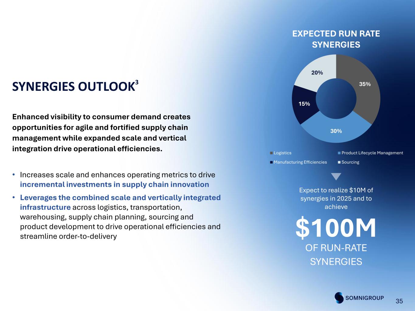 35% 30% 15% 20% Logistics Product Lifecycle Management Manufacturing Efficiencies Sourcing SYNERGIES OUTLOOK3 35 $100M OF RUN-RATE SYNERGIES EXPECTED RUN RATE SYNERGIES Enhanced visibility to consumer demand creates opportunities for agile and fortified supply chain management while expanded scale and vertical integration drive operational efficiencies. • Increases scale and enhances operating metrics to drive incremental investments in supply chain innovation • Leverages the combined scale and vertically integrated infrastructure across logistics, transportation, warehousing, supply chain planning, sourcing and product development to drive operational efficiencies and streamline order-to-delivery Expect to realize $10M of synergies in 2025 and to achieve