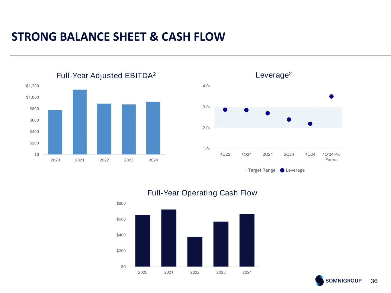$0 $200 $400 $600 $800 2020 2021 2022 2023 2024 Full-Year Operating Cash Flow STRONG BALANCE SHEET & CASH FLOW 36 $0 $200 $400 $600 $800 $1,000 $1,200 2020 2021 2022 2023 2024 Full-Year Adjusted EBITDA2 1.0x 2.0x 3.0x 4.0x 4Q23 1Q24 2Q24 3Q24 4Q24 4Q'24 Pro Forma Leverage2 Target Range Leverage