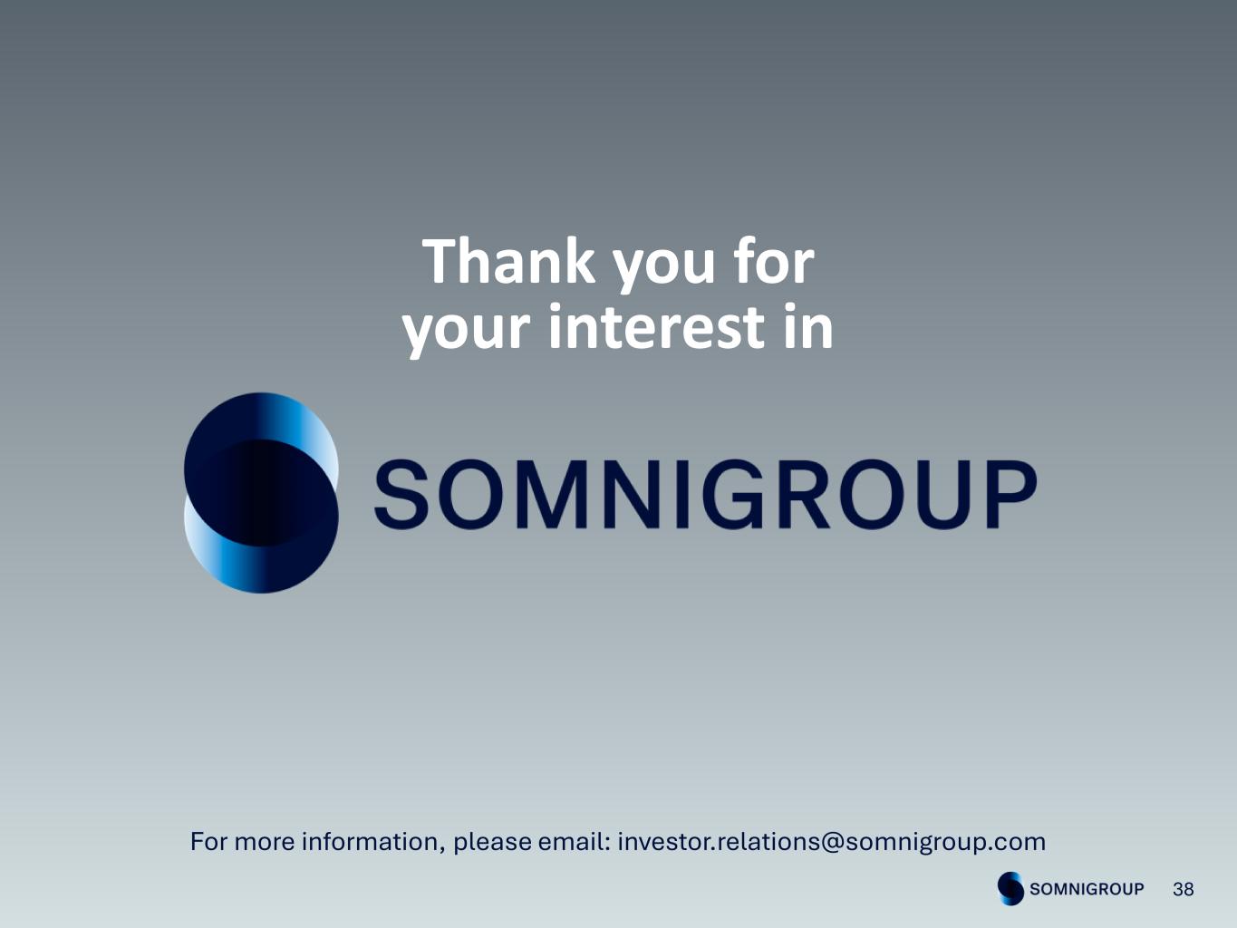 Thank you for your interest in For more information, please email: investor.relations@somnigroup.com 38